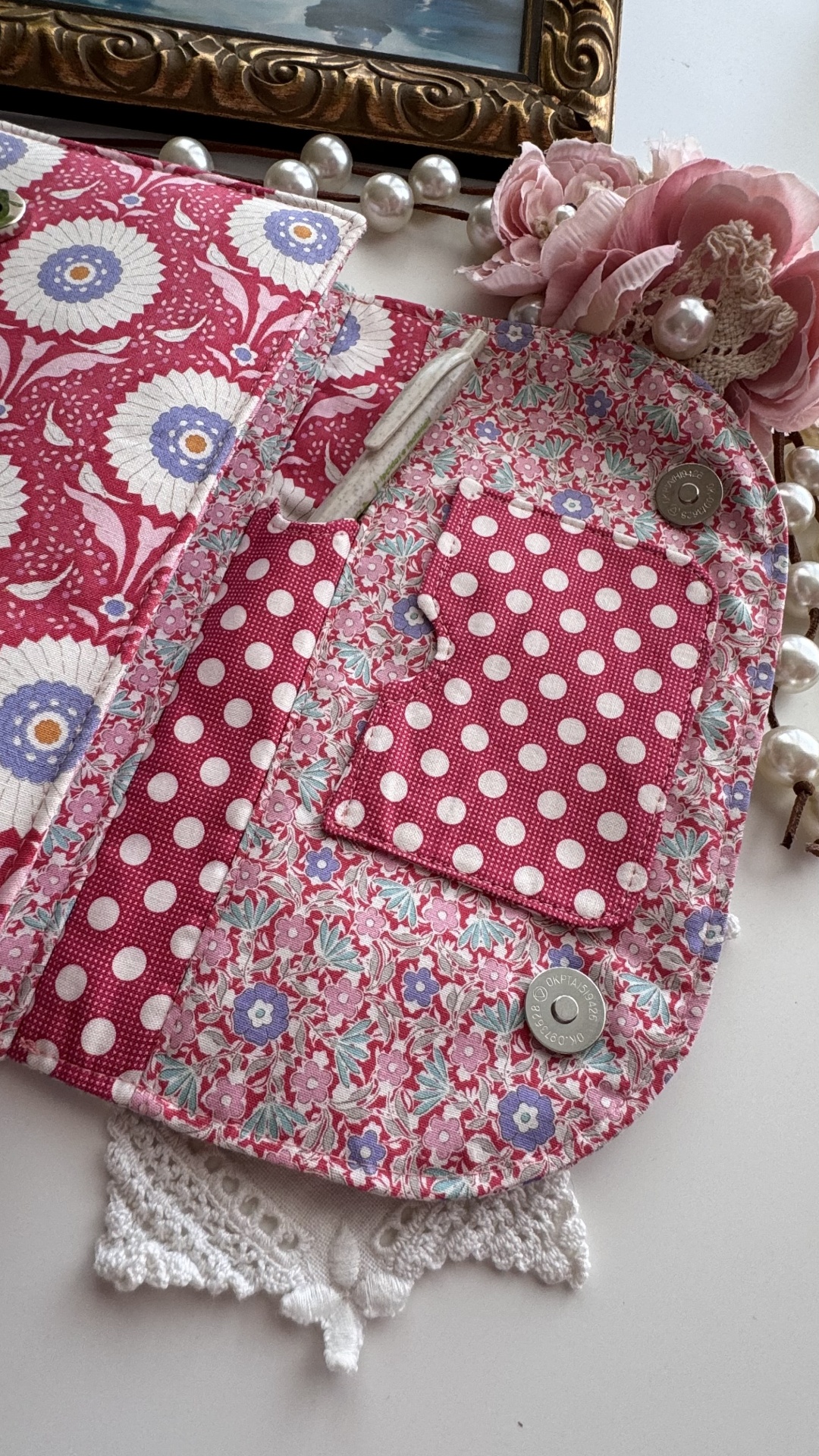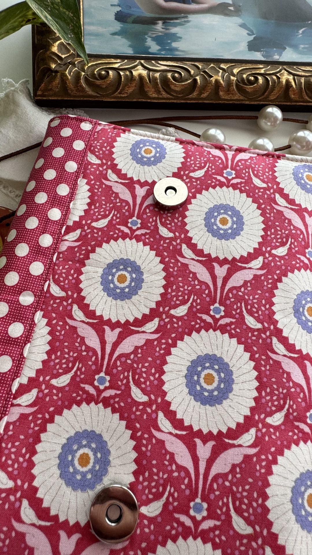 Capa de agenda A5 (com dimensão máxima de 21x15 e com lombada máxima de 2,5cm) com imensos bolsos interiores para cartões, folhas de apontamentos e recados; bolso para canetas e espaço para folhas soltas. Mola magnética para facilitar o fecho da agenda.