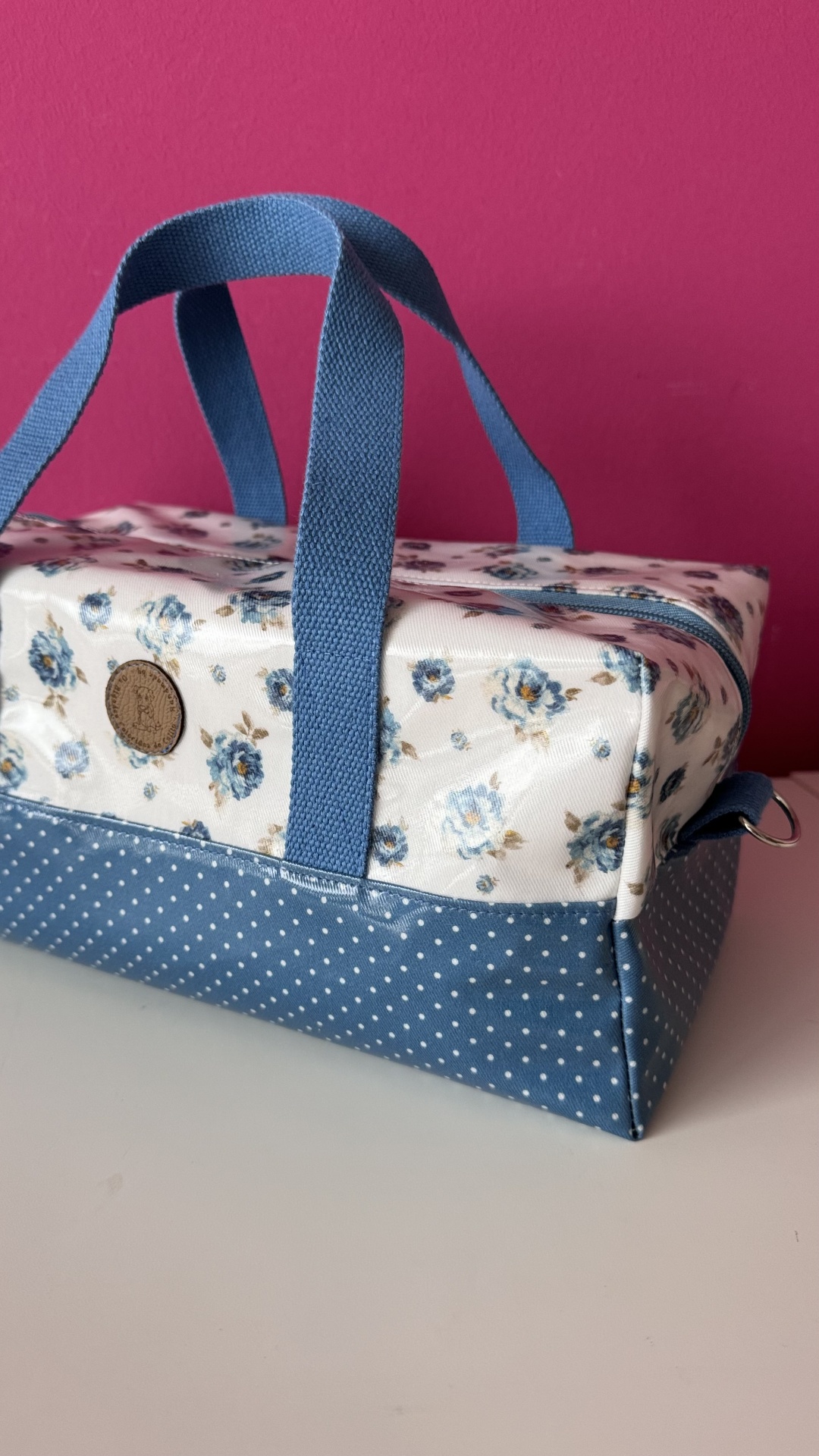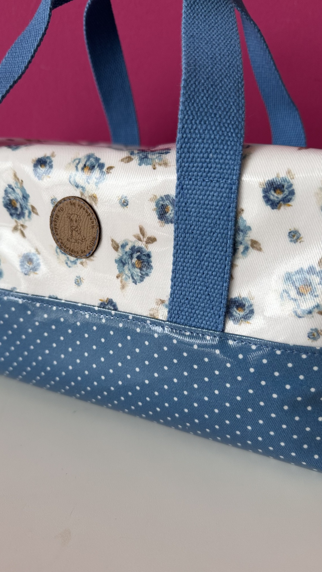 Elaborada com tecido plastificado e térmico de bolha (para que os alimentos se conservem durante mais tempo). Alças de percinta de algodão. Pode levar alça de ombro mediante indicação do cliente. (Valor da alça não incluído no preço apresentado)