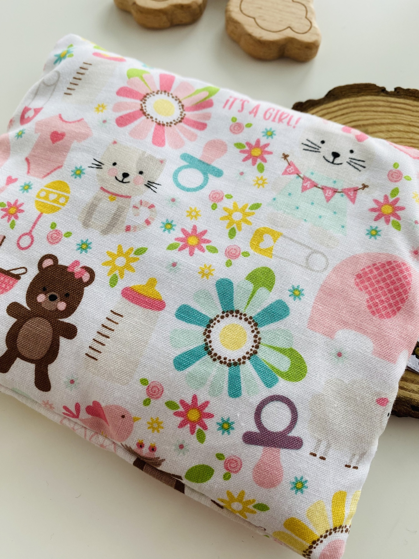 Mede aproximadamente 15x13cm, sendo do tamanho ideal para os primeiros anos de vida desde o nascimento.