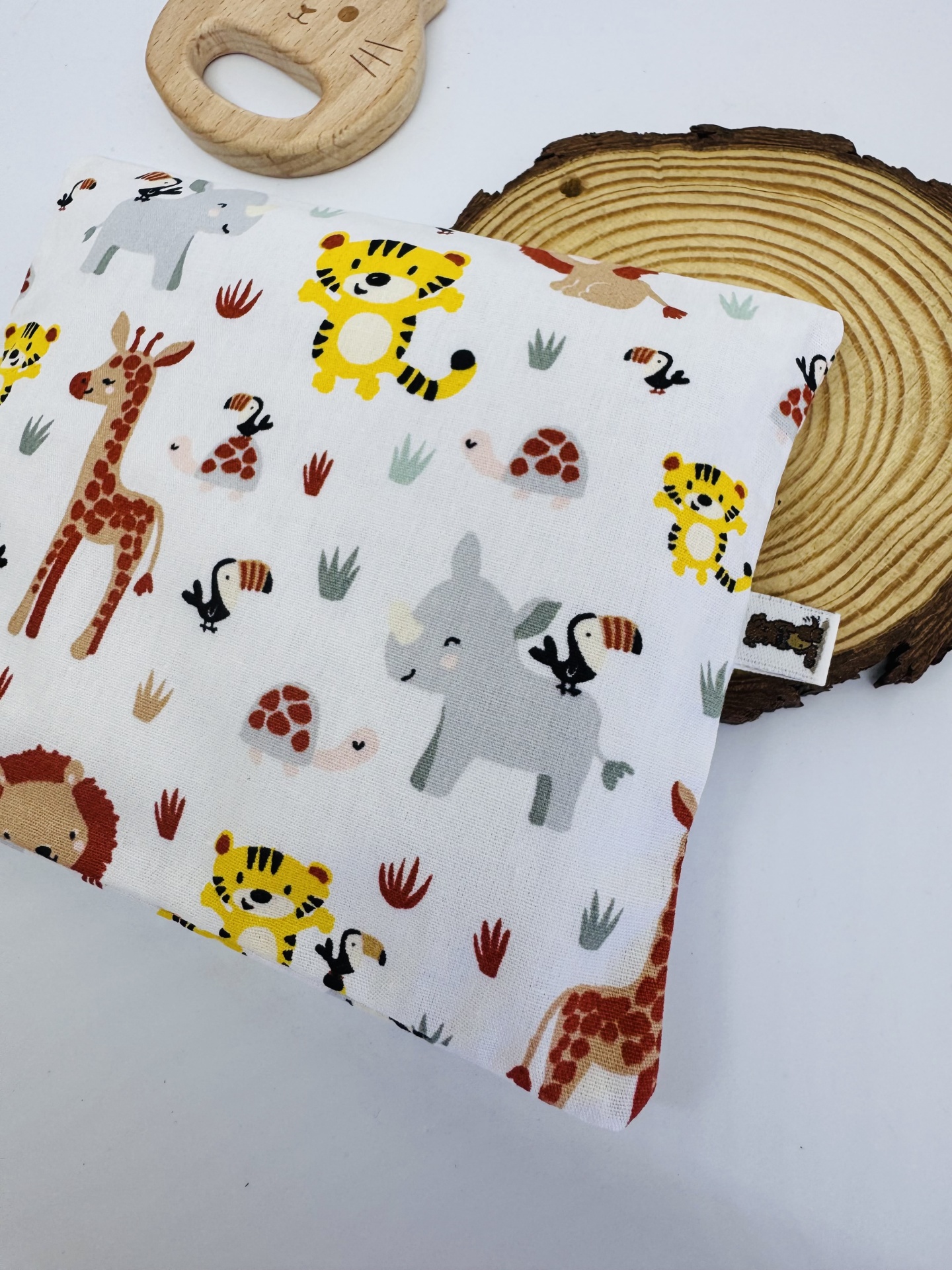 No micro-ondas, aquecer a almofada, sem a capa, durante cerca de 40 segundos. Este tempo é indicativo e pode variar consoante a potência do micro-ondas. Deve ser sempre verificada a temperatura antes de aplicar sobre o bebé.