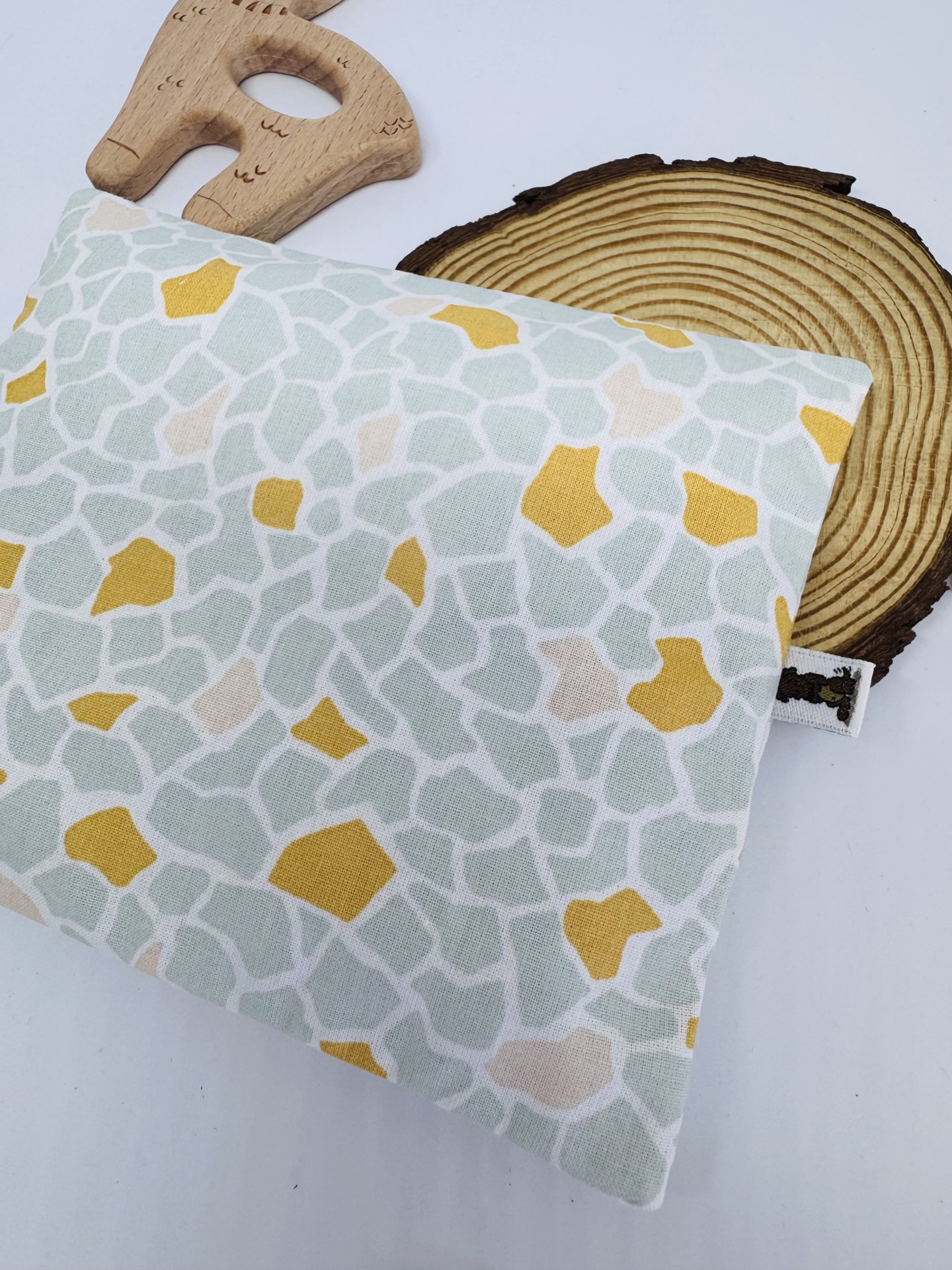 A almofada é composta por duas partes: a capa 100% algodão e um saquinho de sementes de trigo e flor de alfazema. A capa é removível e pode ser lavada e trocada por outra quando quiser.