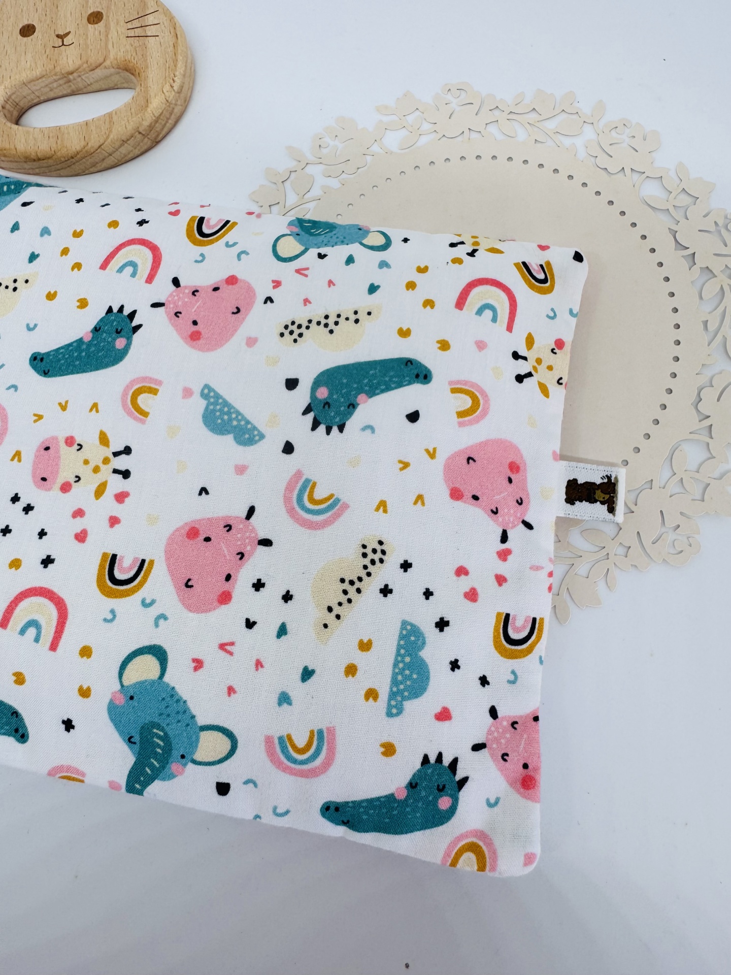 Mede aproximadamente 15x13cm, sendo do tamanho ideal para os primeiros anos de vida desde o nascimento.