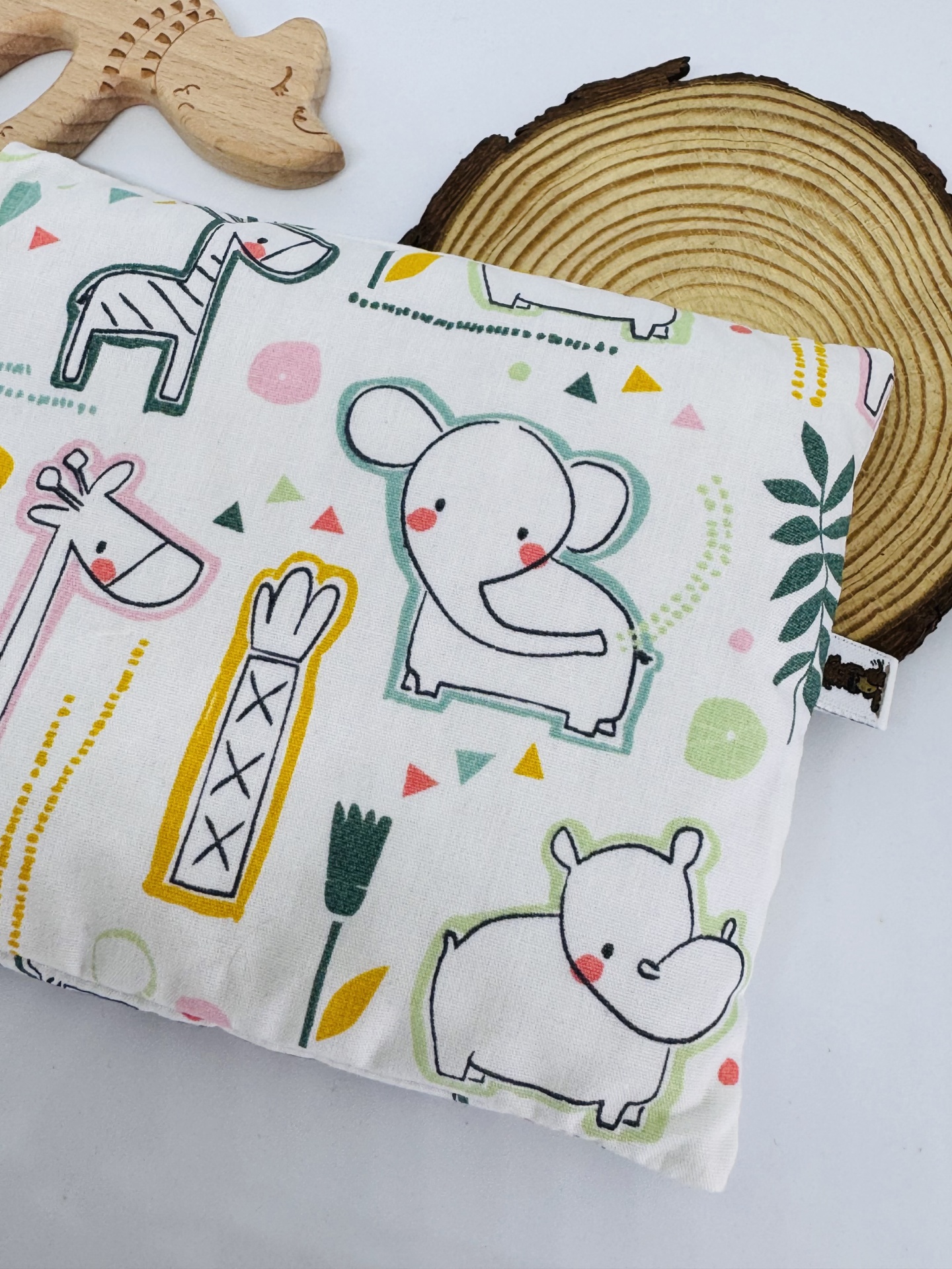 No micro-ondas, aquecer a almofada, sem a capa, durante cerca de 40 segundos. Este tempo é indicativo e pode variar consoante a potência do micro-ondas. Deve ser sempre verificada a temperatura antes de aplicar sobre o bebé.