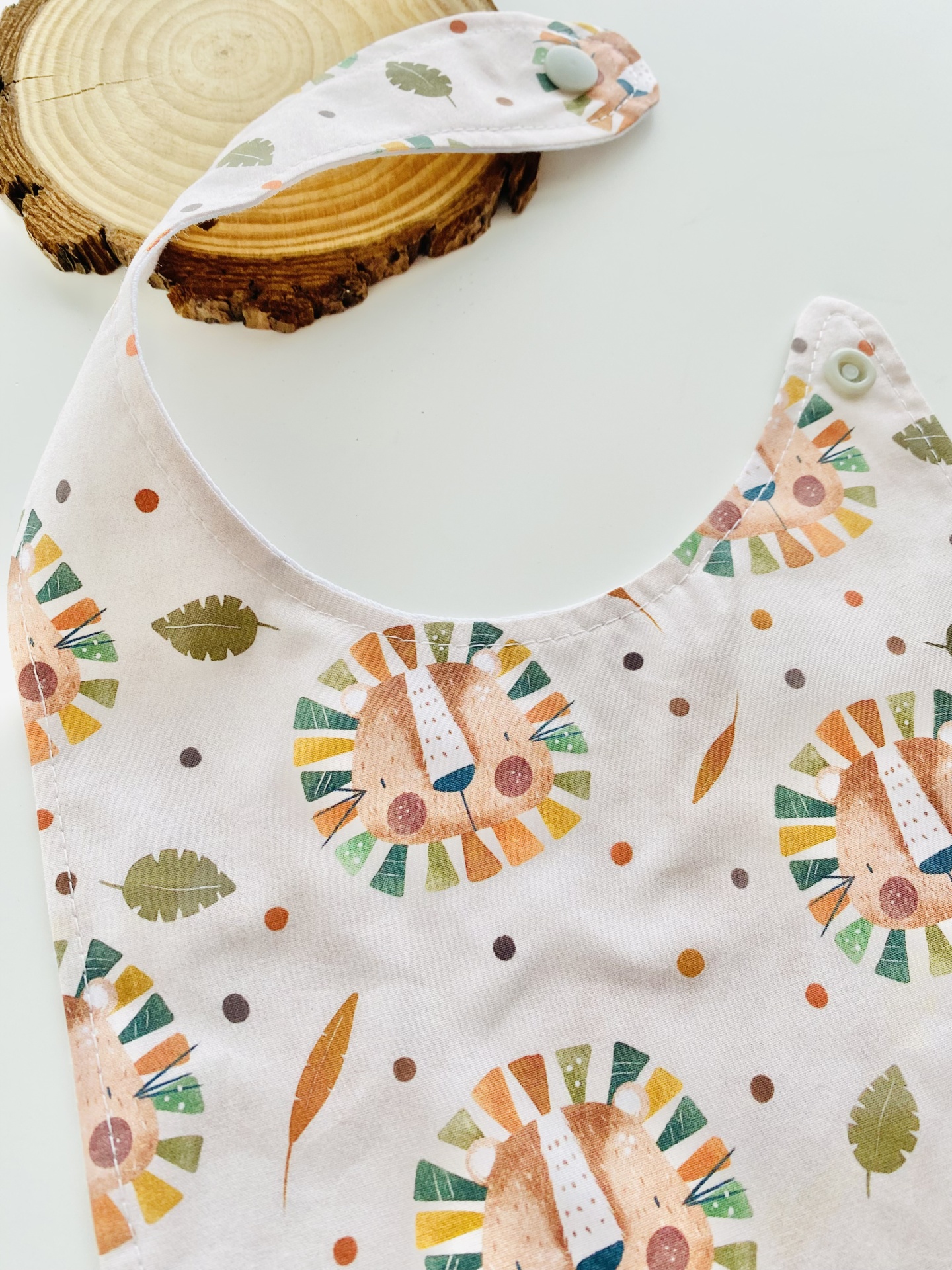Babetes em tecido de algodão e jersey plastificado.