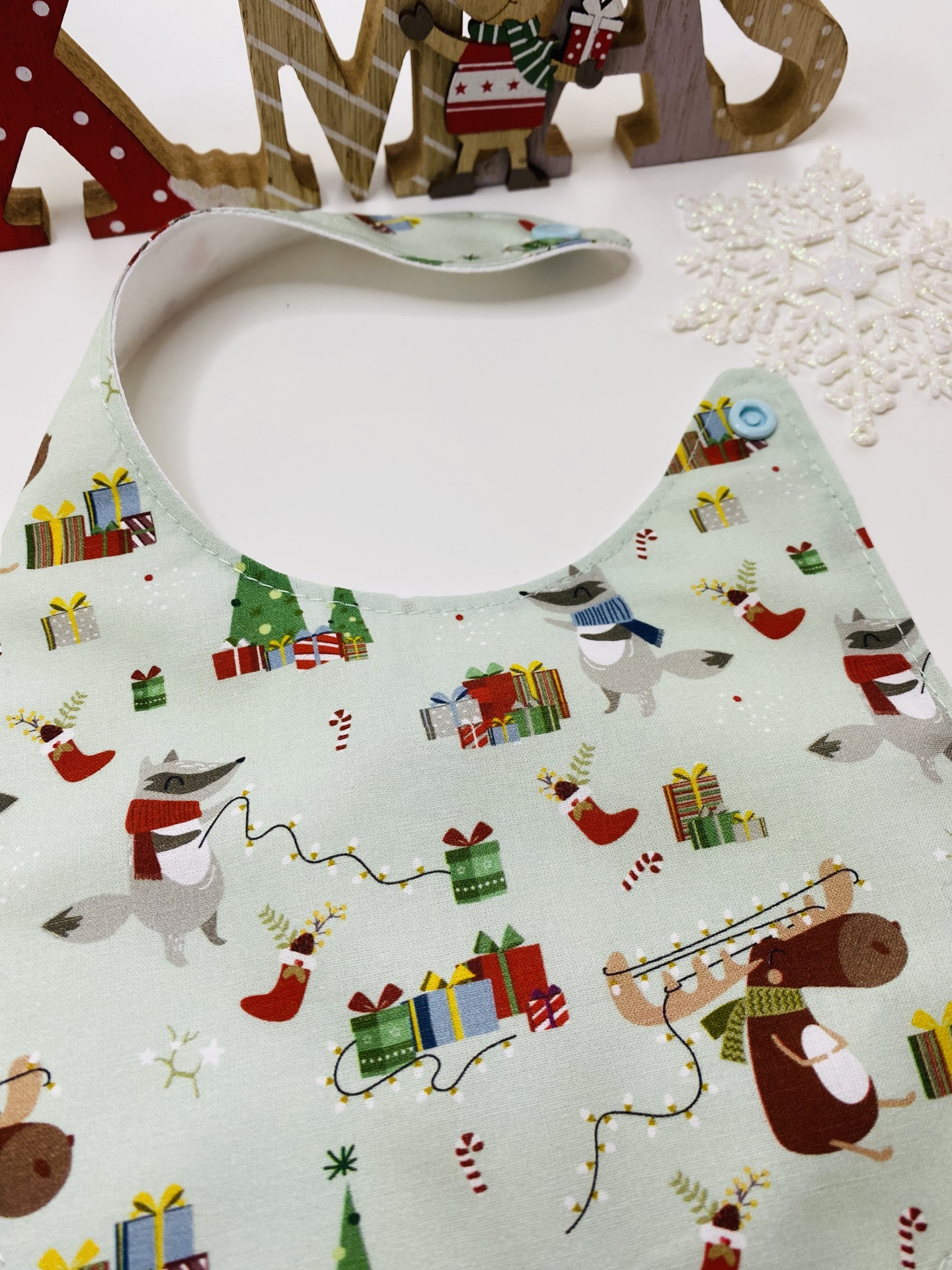 Feito com tecido de algodão e jersey impermeável. Fecha com mola de plástico.