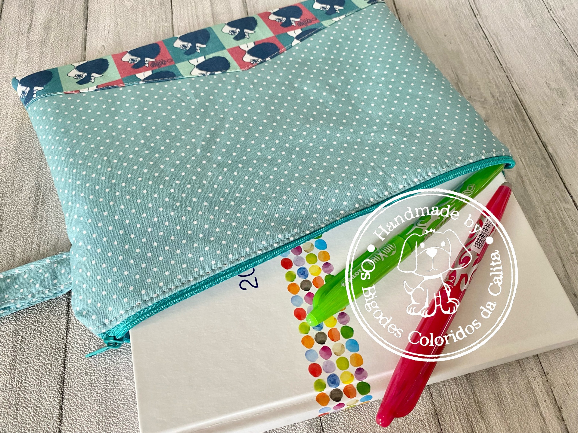Bolsa de algodão (interior e exterior) com fecho e com pega para levar na mão ou dentro da mala.