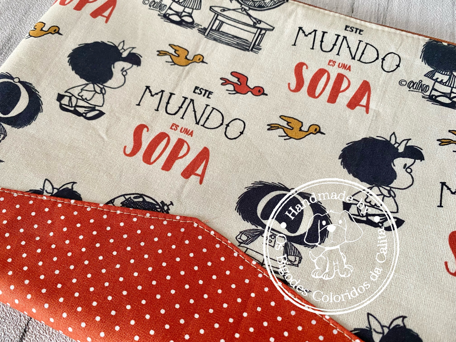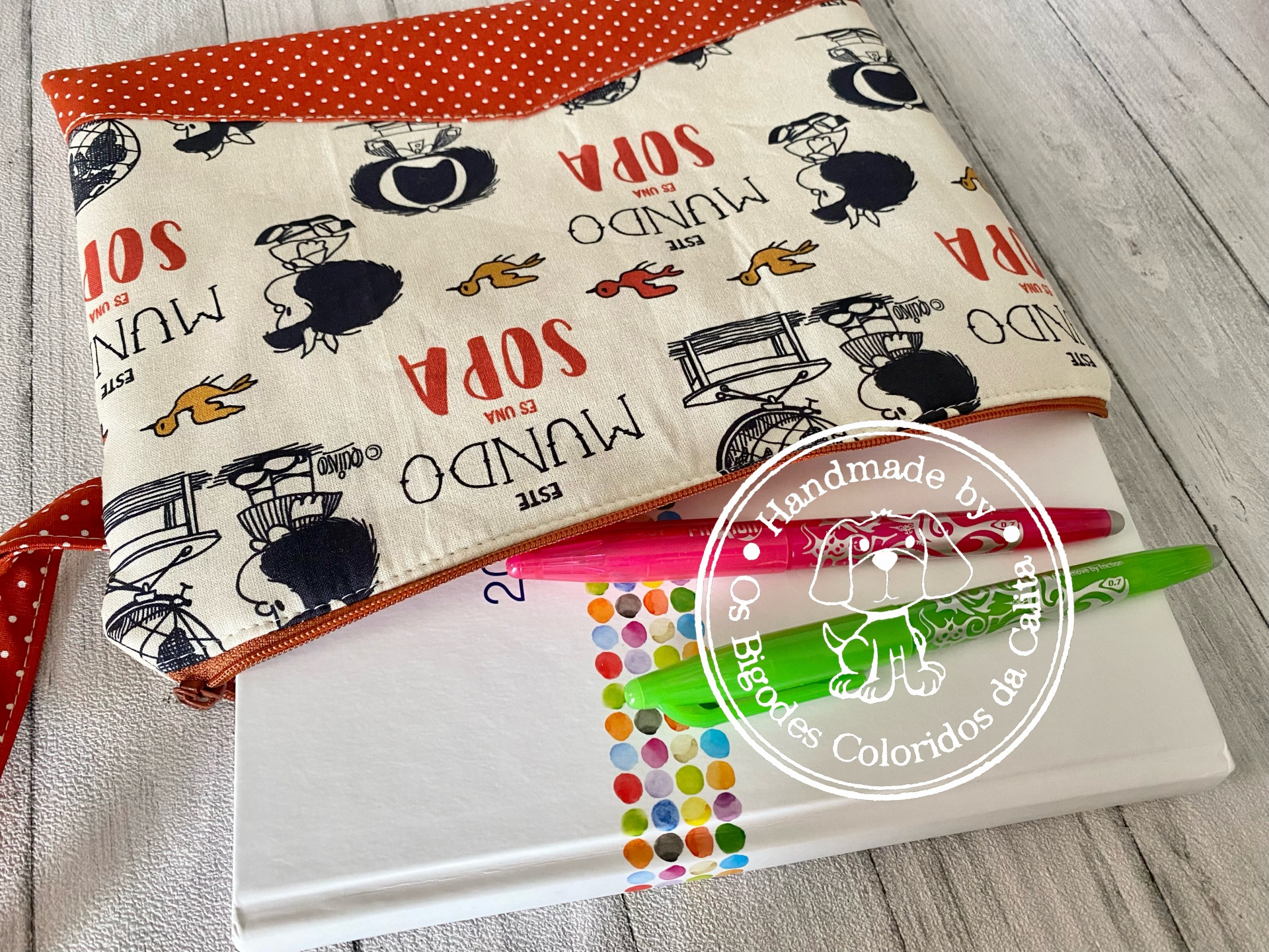 Bolsa de algodão (interior e exterior) com fecho e com pega para levar na mão ou dentro da mala.