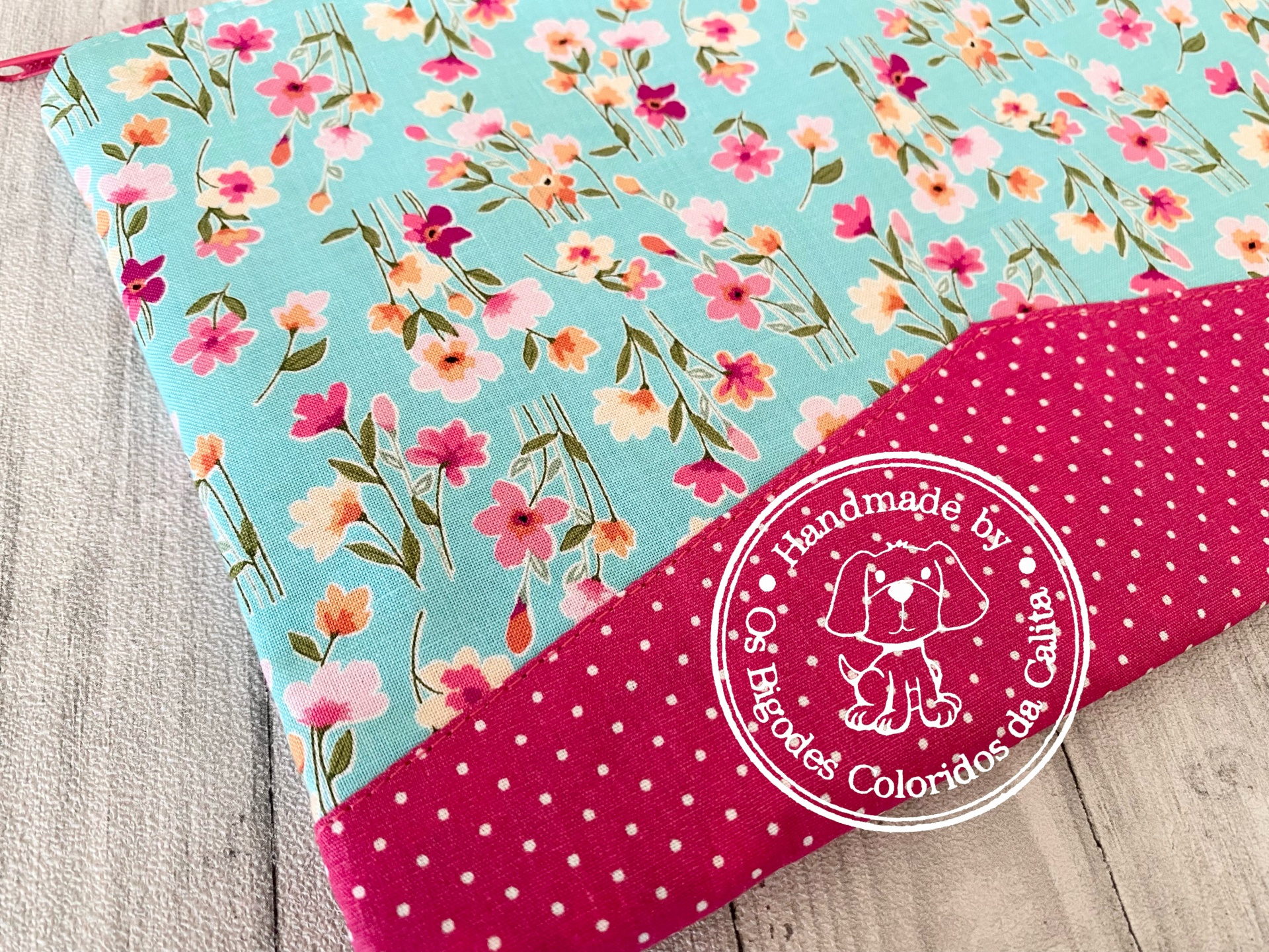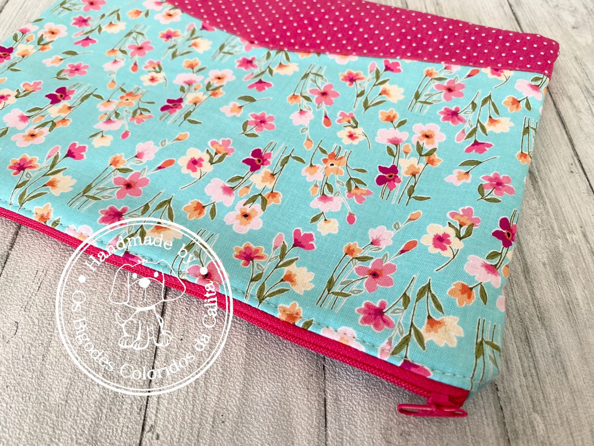 Bolsa de algodão (interior e exterior) com fecho e com pega para levar na mão ou dentro da mala.