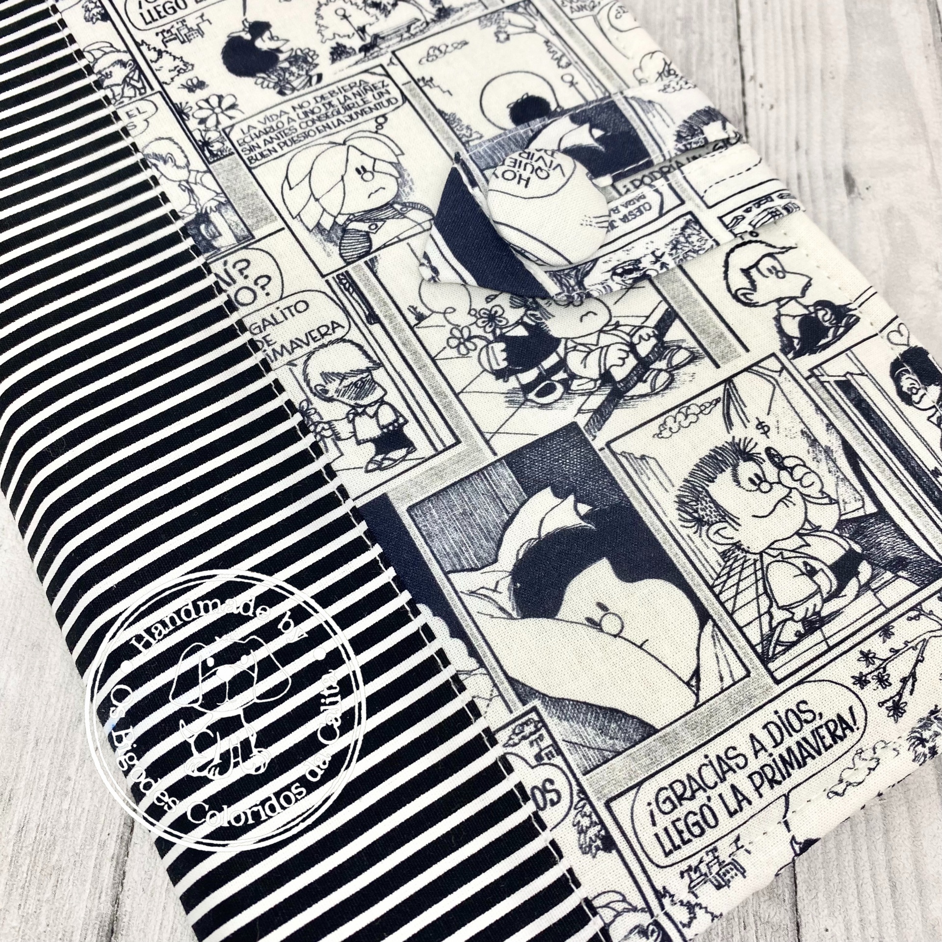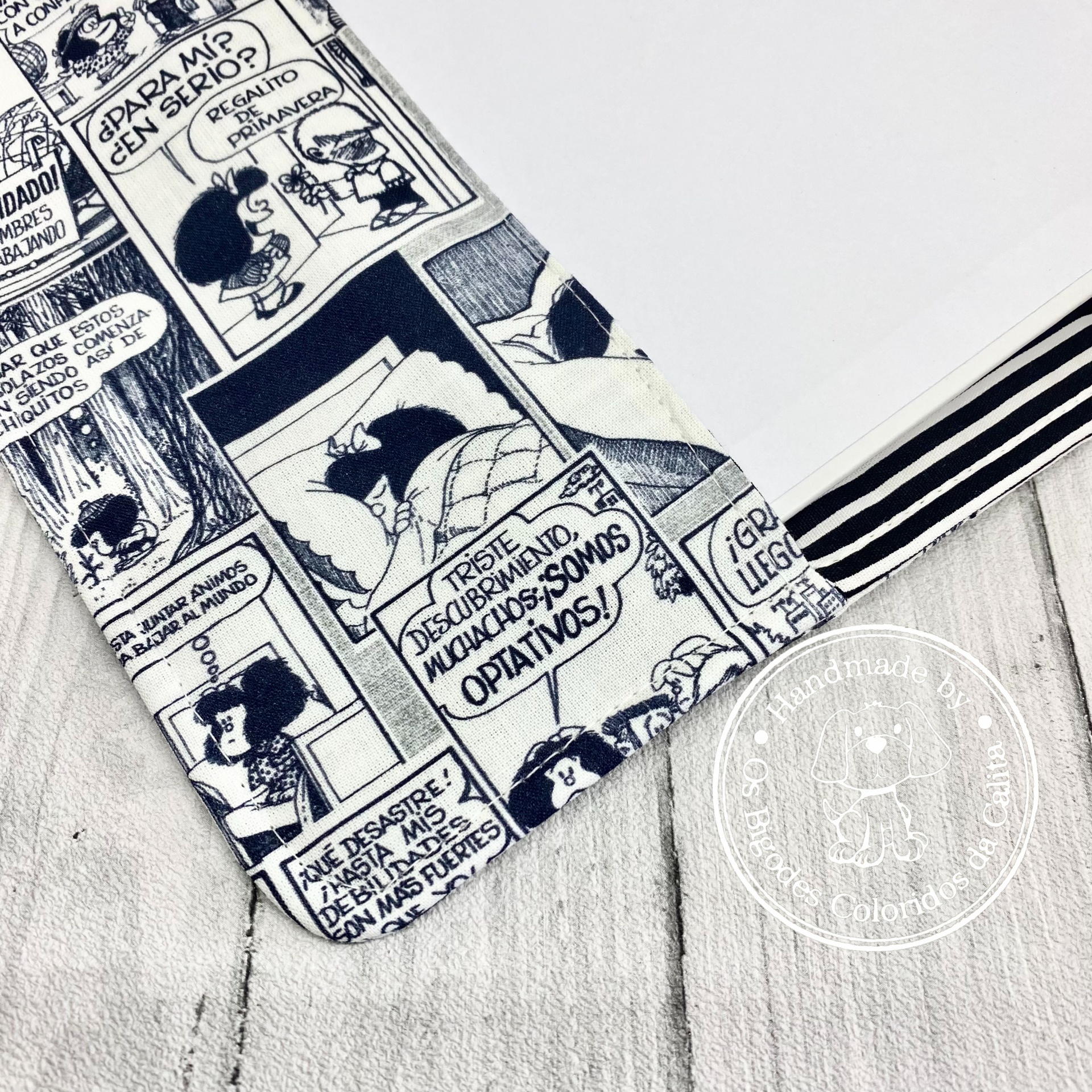 Tecidos de algodão, com duas abas interiores para encaixar as capas da agenda.