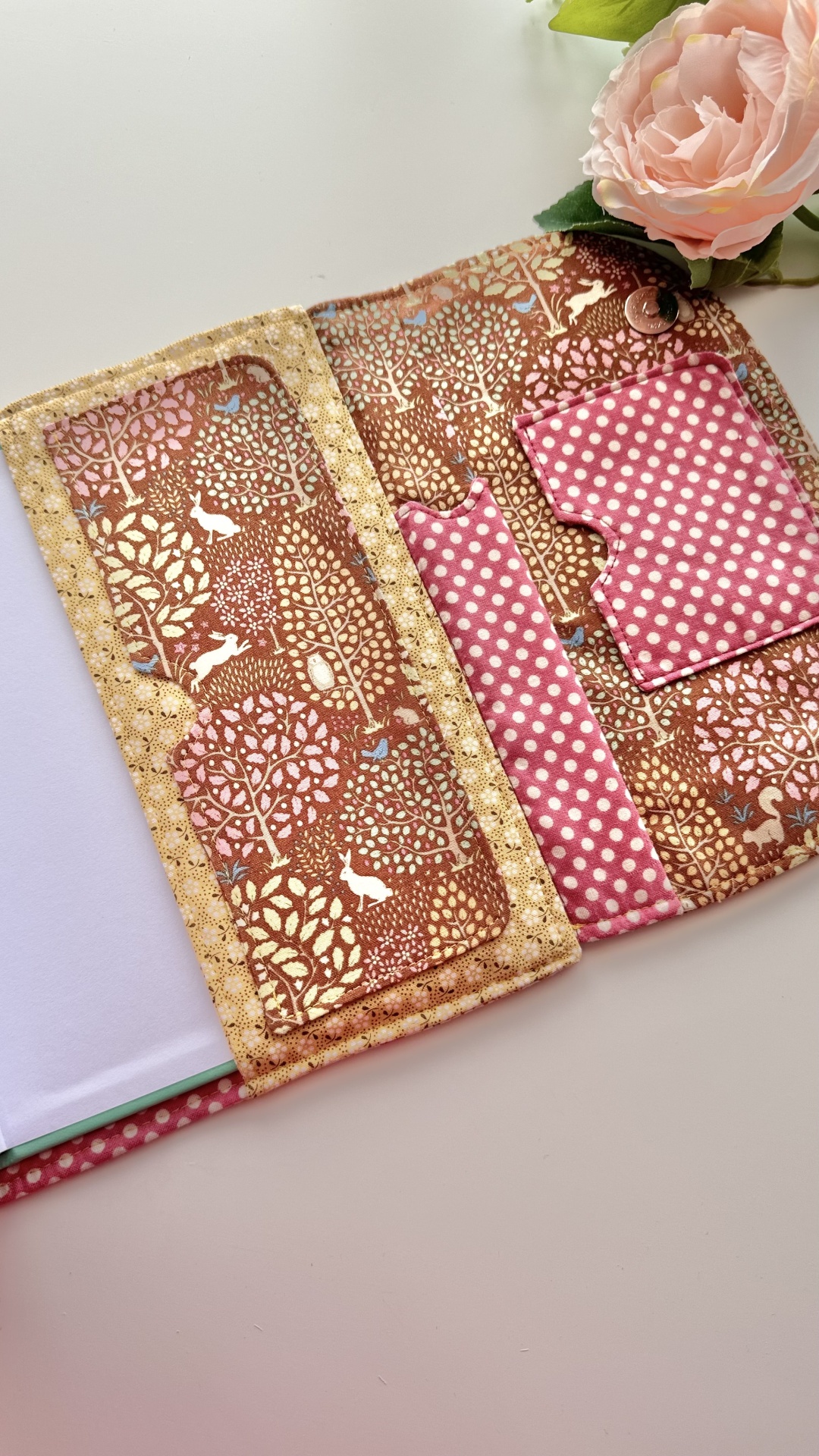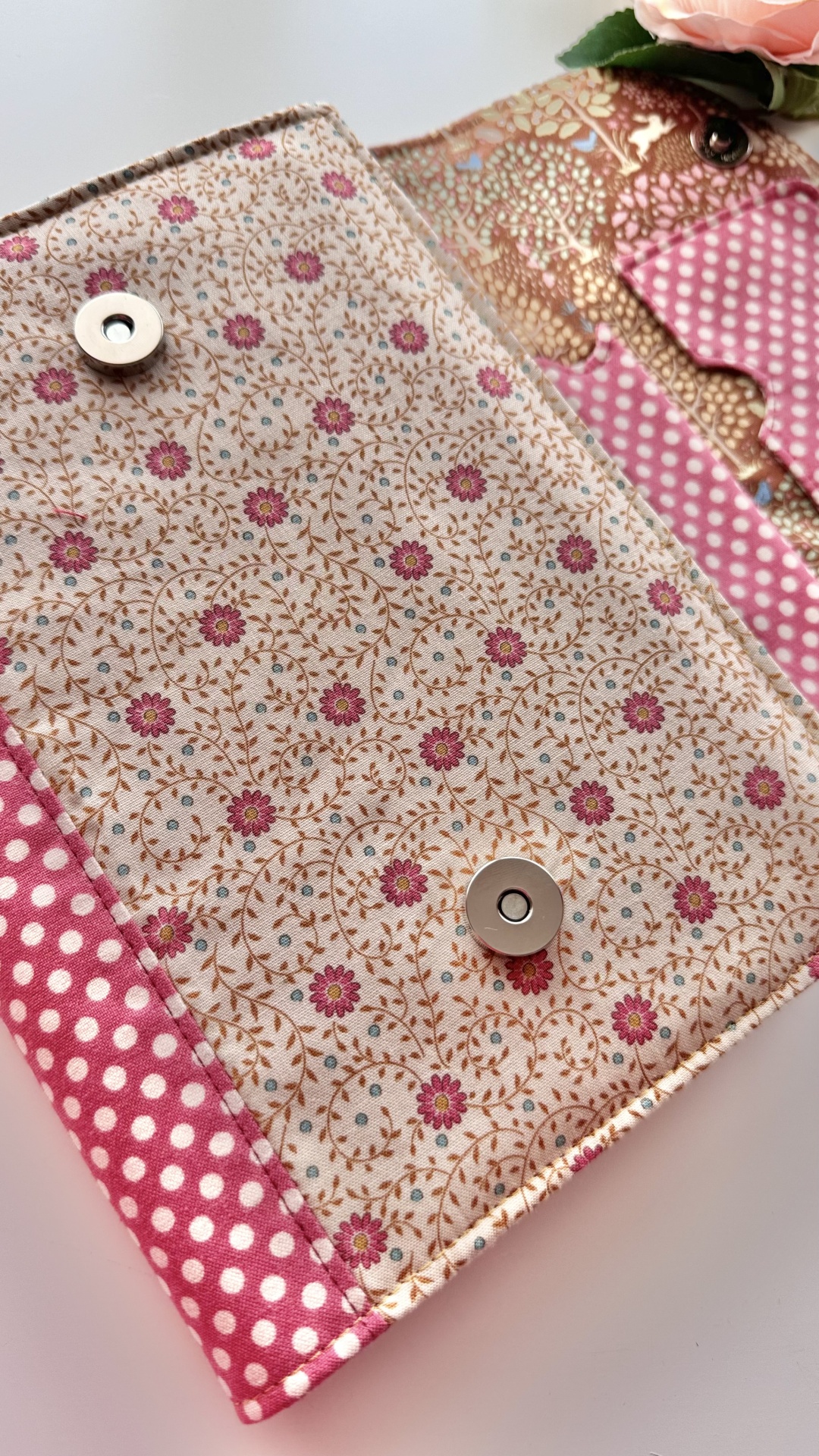 Capa de agenda A5 (com dimensão máxima de 21x15 e com lombada máxima de 2,5cm) com imensos bolsos interiores para cartões, folhas de apontamentos e recados; bolso para canetas e espaço para folhas soltas. Mola magnética para facilitar o fecho da agenda.