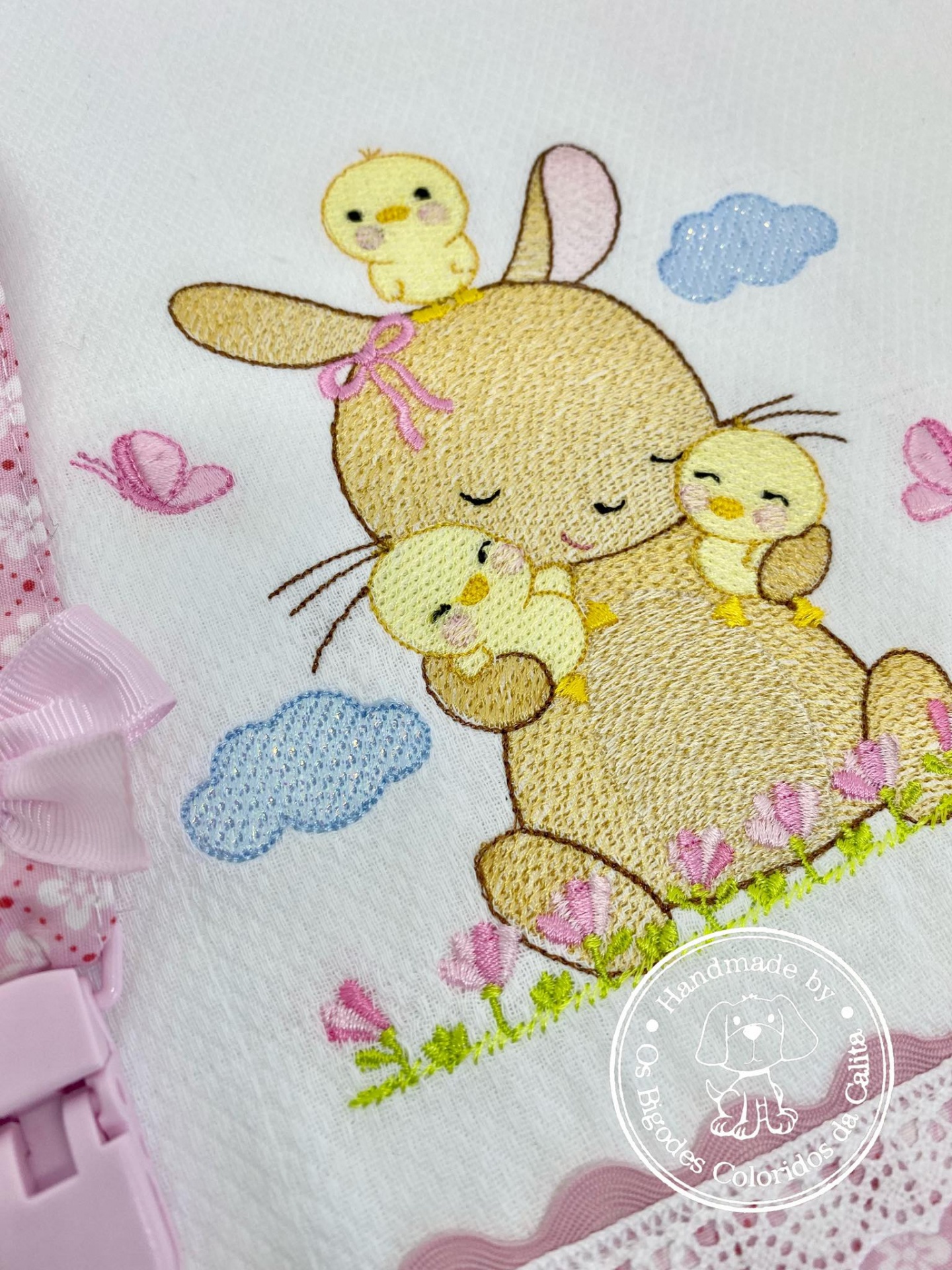Conjunto de fralda de algodão e prende chucha.