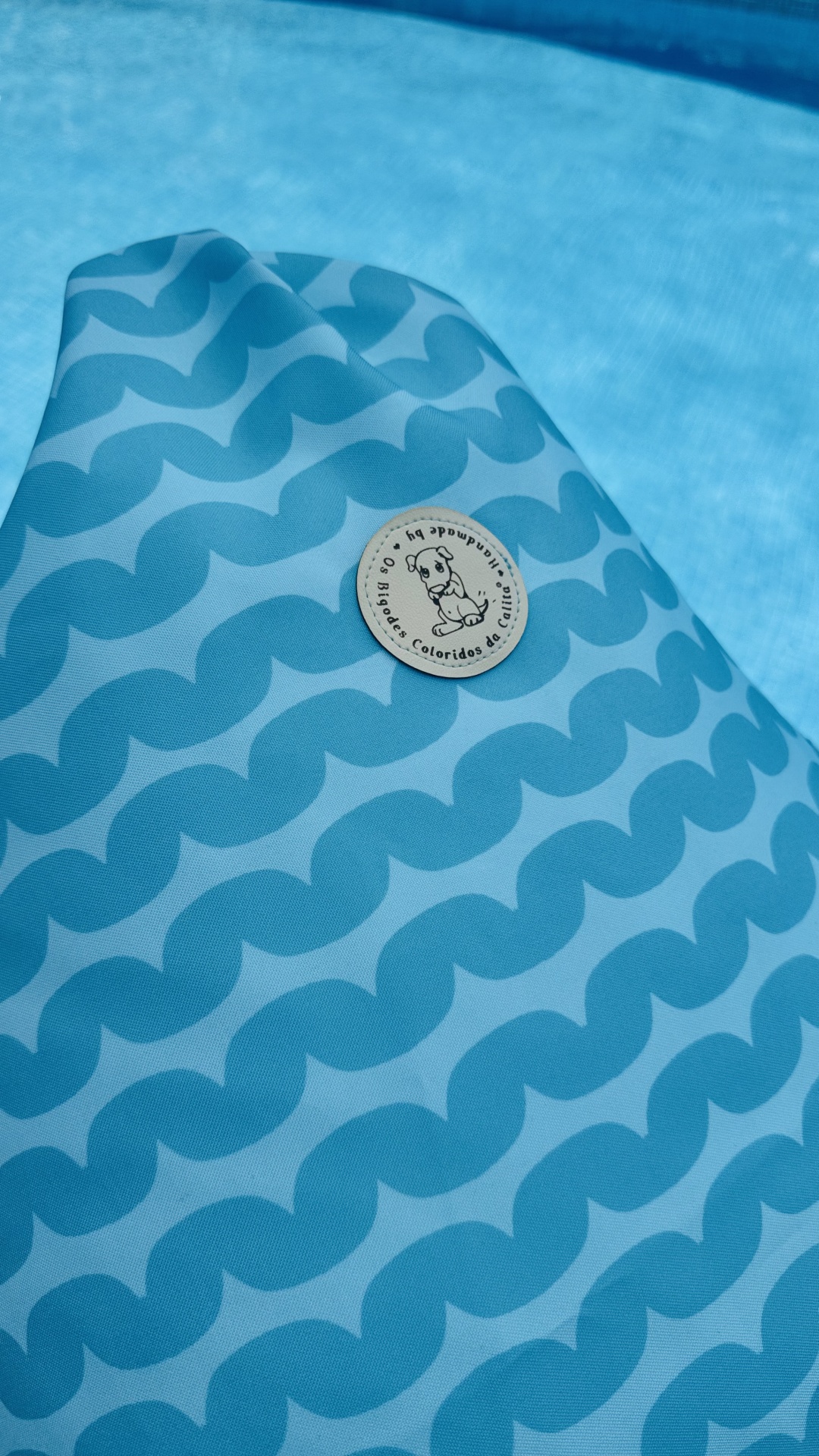 Tecido de 100% poliéster que leva um tratamento para que fique impermeável, ou seja repele a água, não fica mancha do sal do mar e não deixa passar humidade.