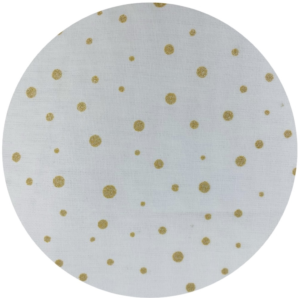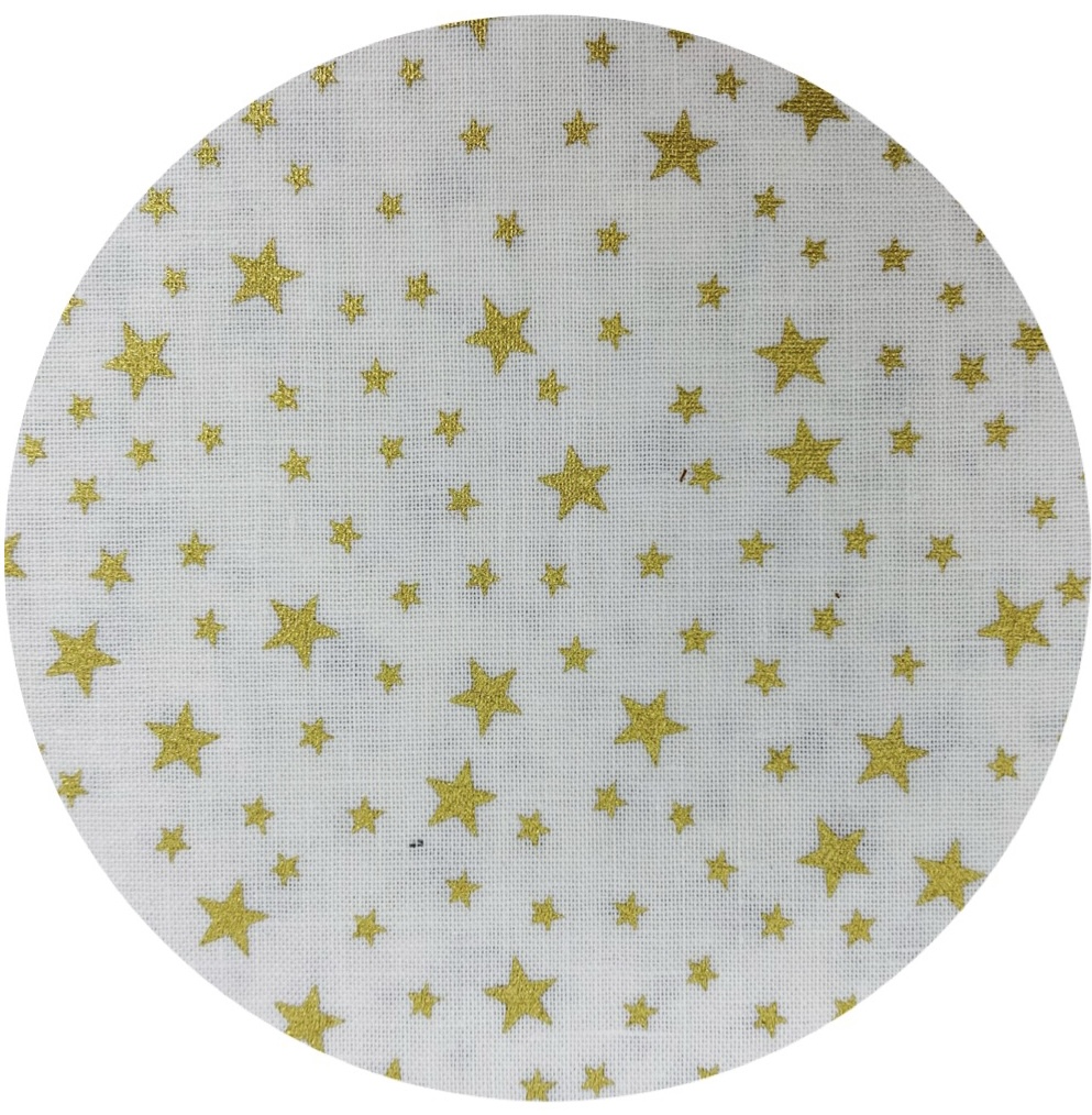 Feitas em tecido de algodão com apontamentos dourados. Bordadas com linha dourada.
