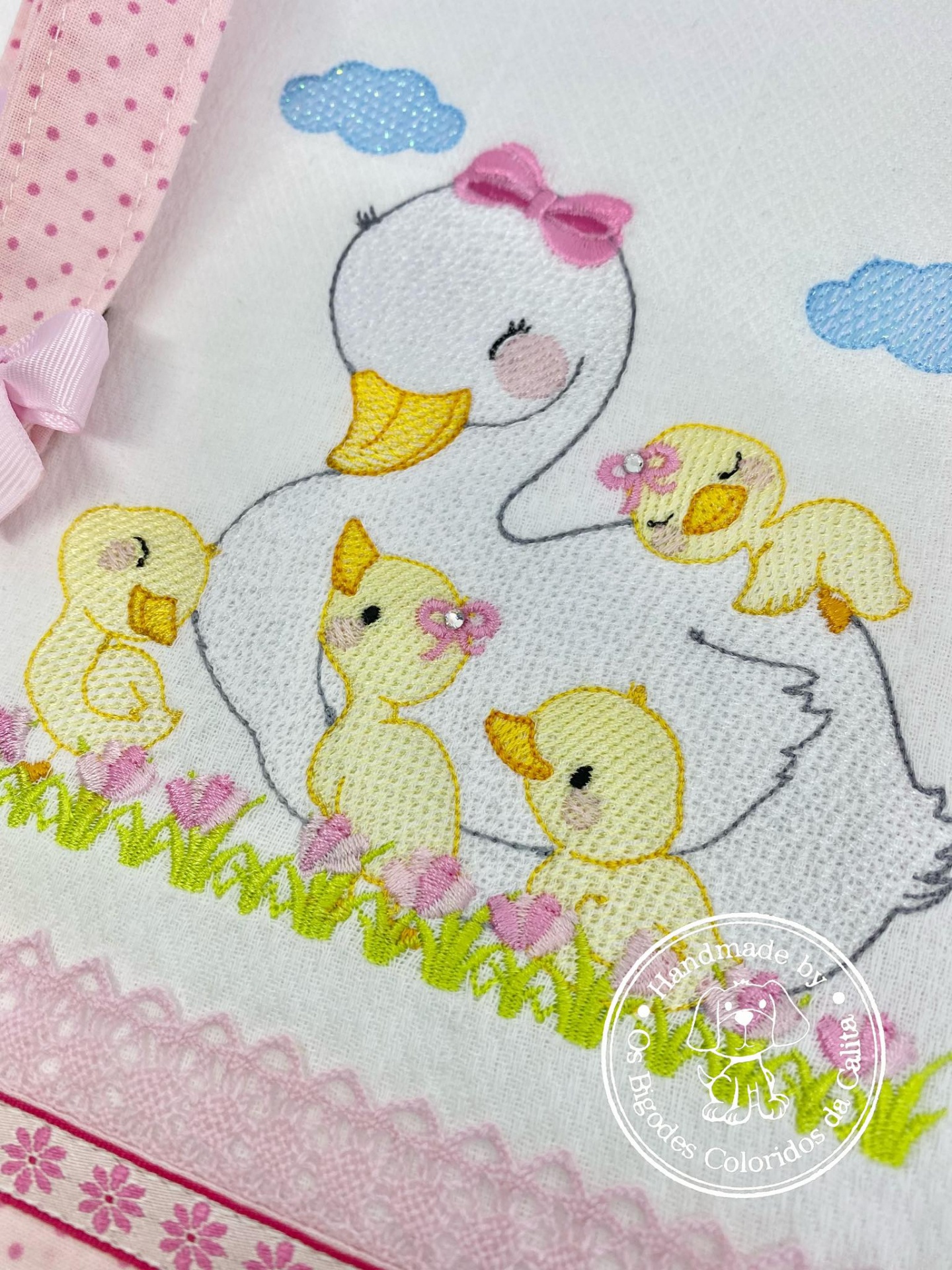 Conjunto de fralda de algodão e prende chucha.
