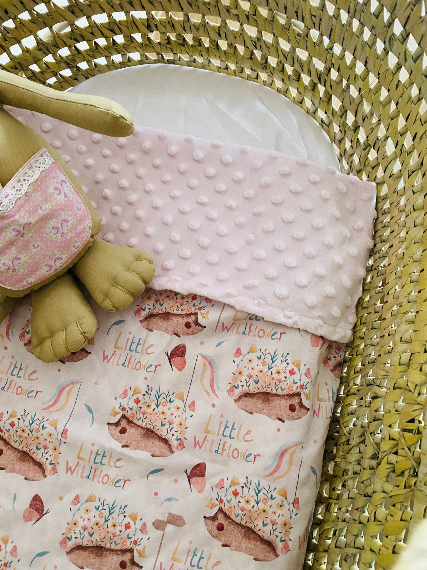 Feita com tecido 100% algodão e minky muito macio e suave, além de muito quentinho.