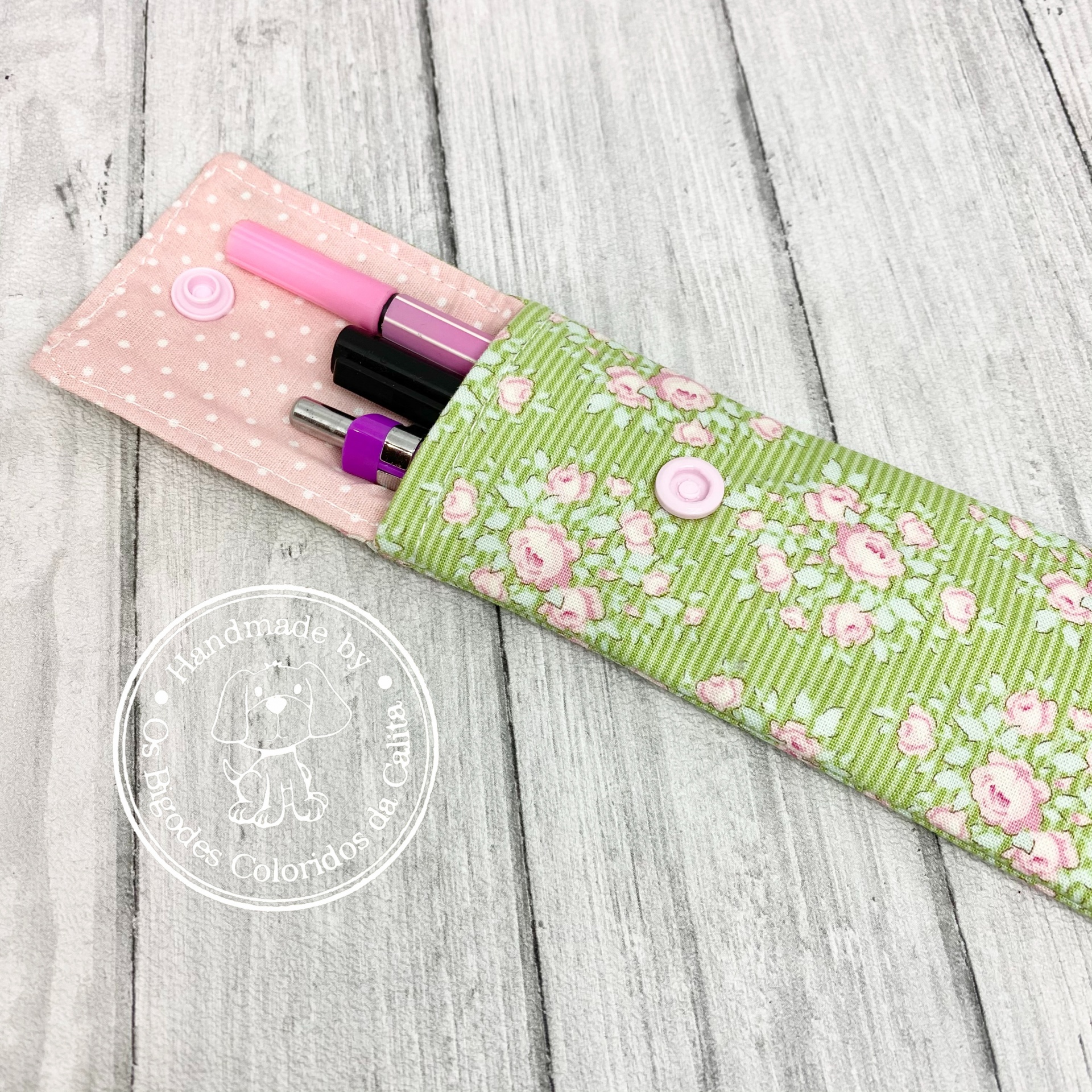Mini estojos são estojos pequenos em que cabem no máximo 4 canetas. São ideais pra levar na mala. Tecido de algodão.