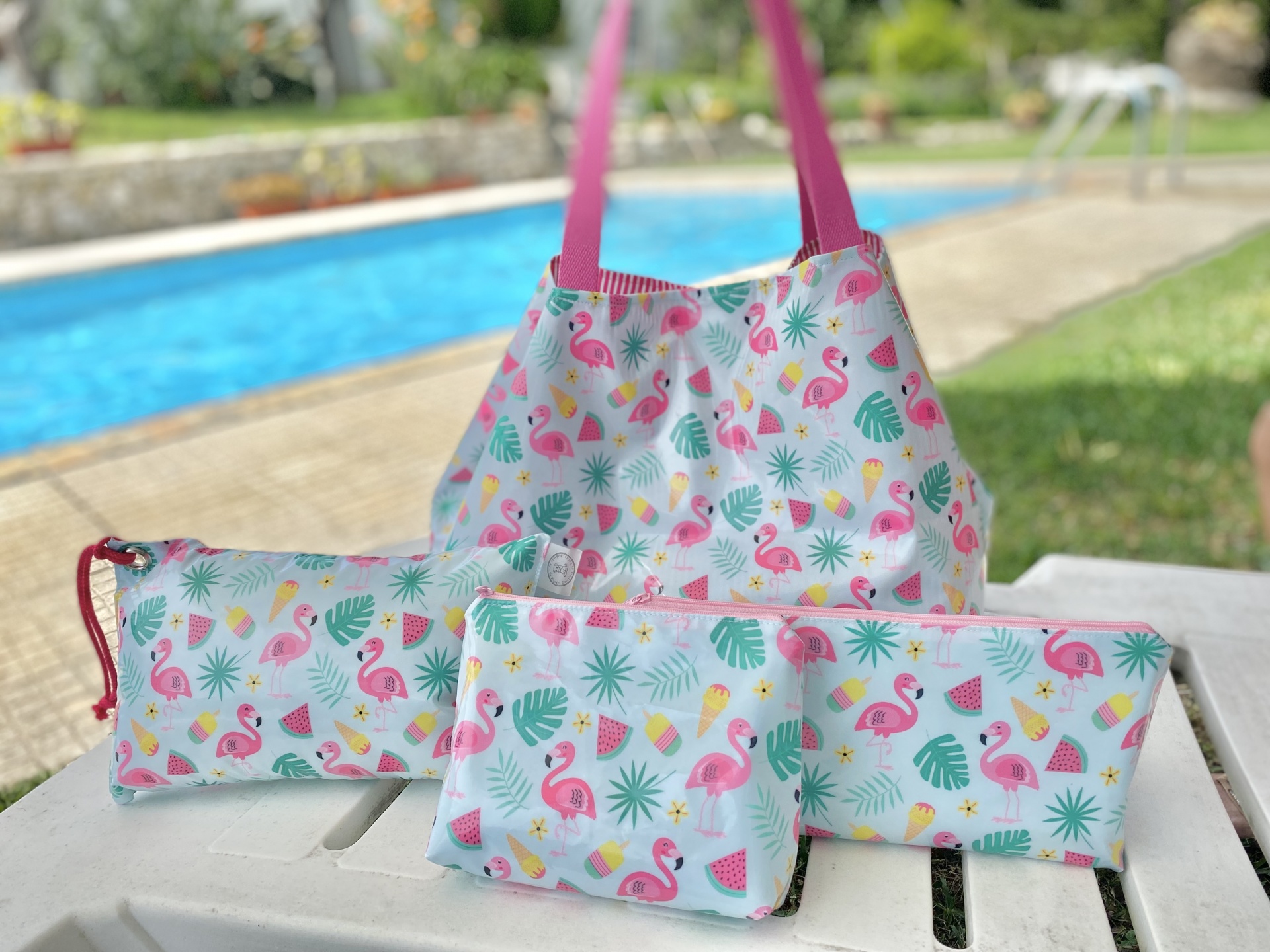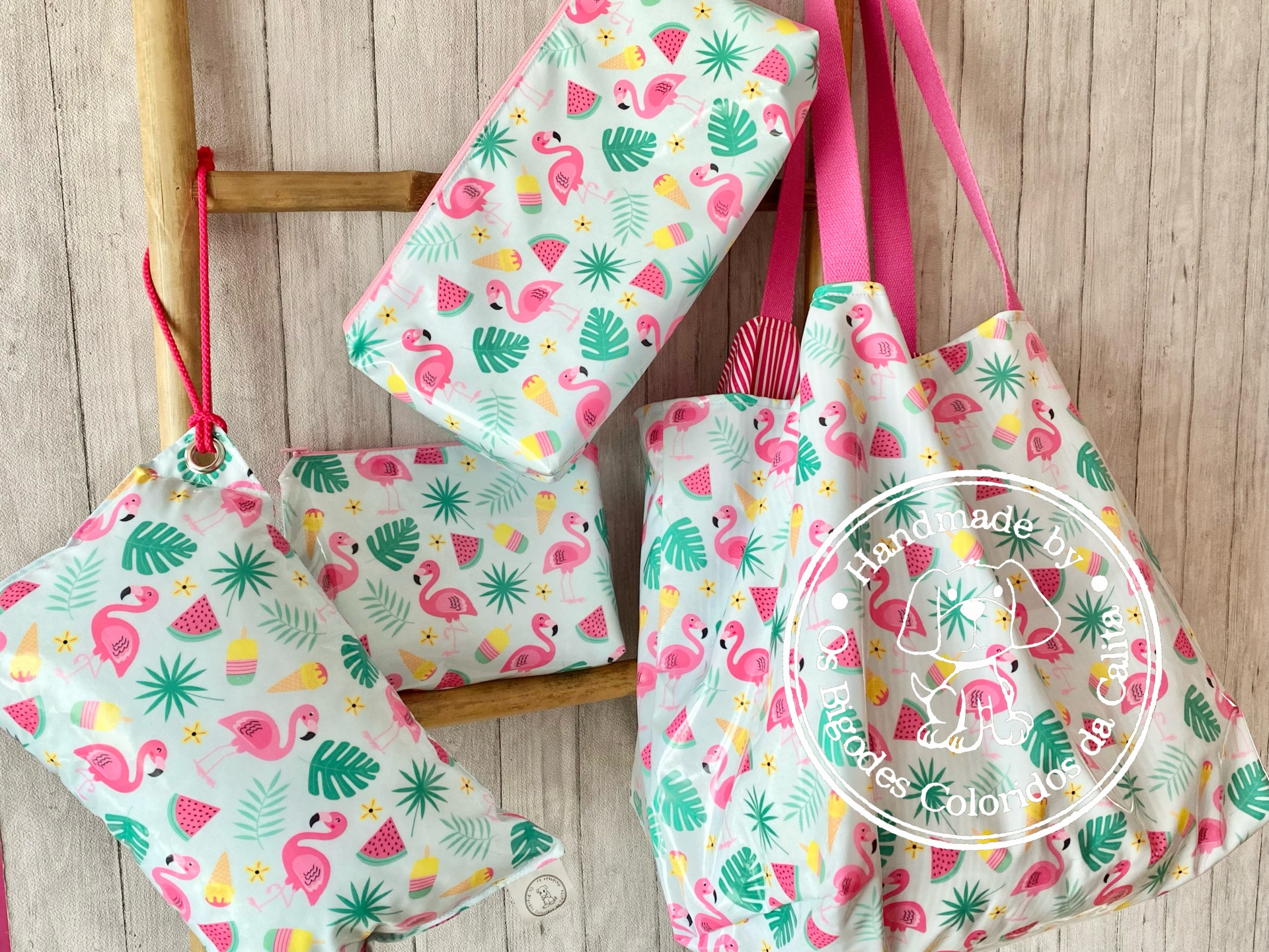 Necessaire Plastificada Grande Flamingos&Gelados