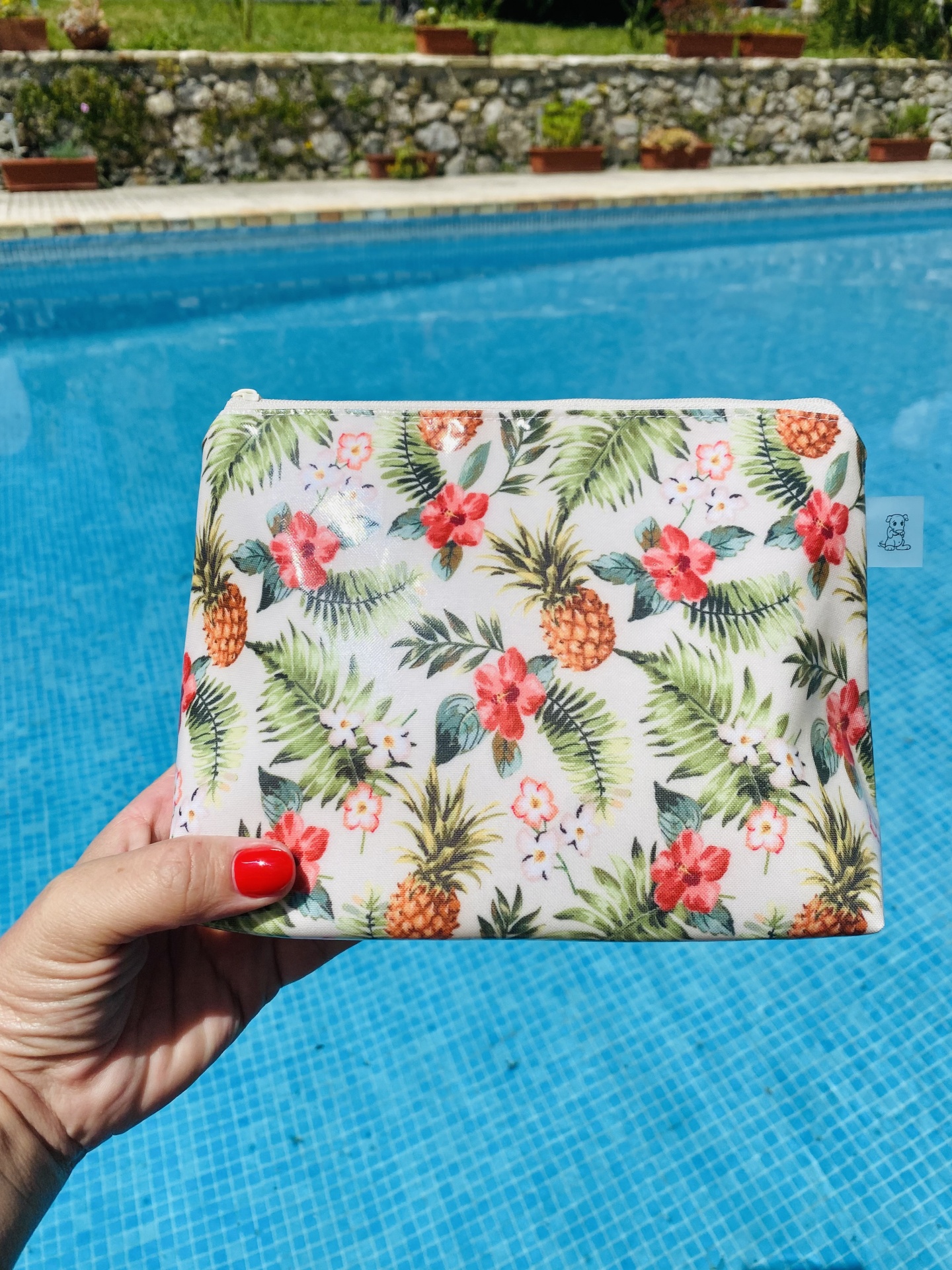 Necessaire Plastificada Pequena Ananases e Hibiscos