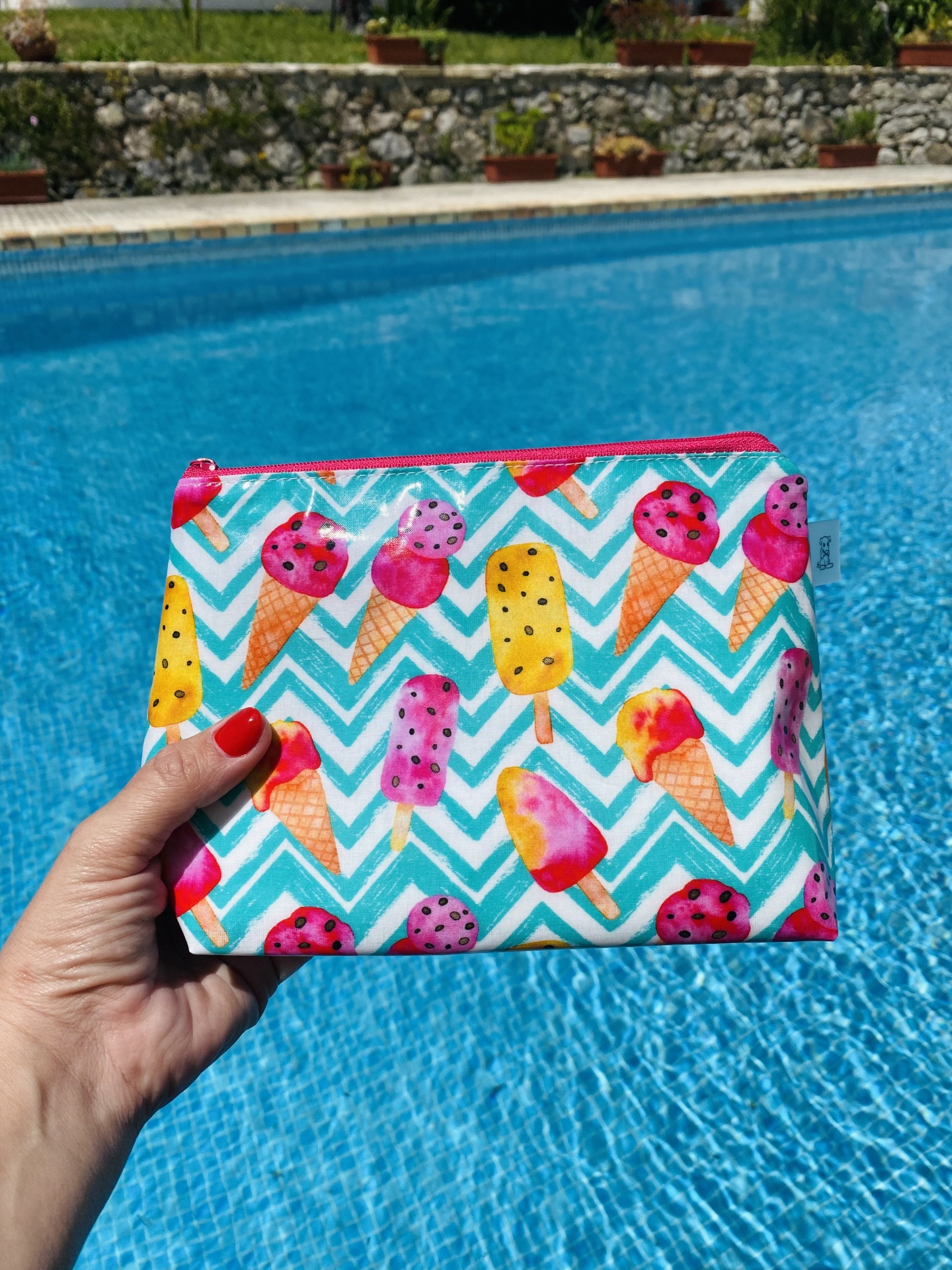 Necessaire Plastificada Pequena Chevron Gelados