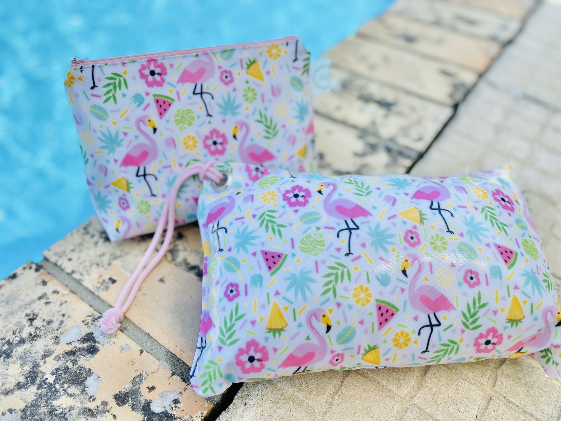 Necessaire Plastificada Pequena Flamingos Florais