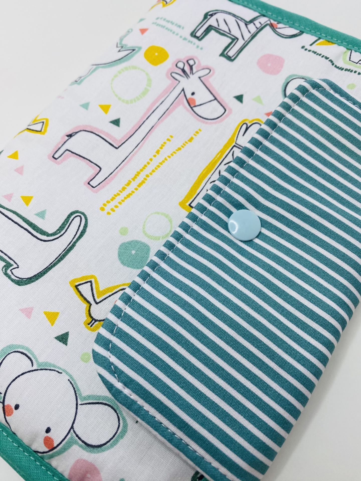 Porta documentos de criança. Espaço para a caderneta de saúde, boletim de vacinas, cartões e outros documentos do bebé. Tecidos de algodão. Parte interior com divisória em plastico maleável com fecho.