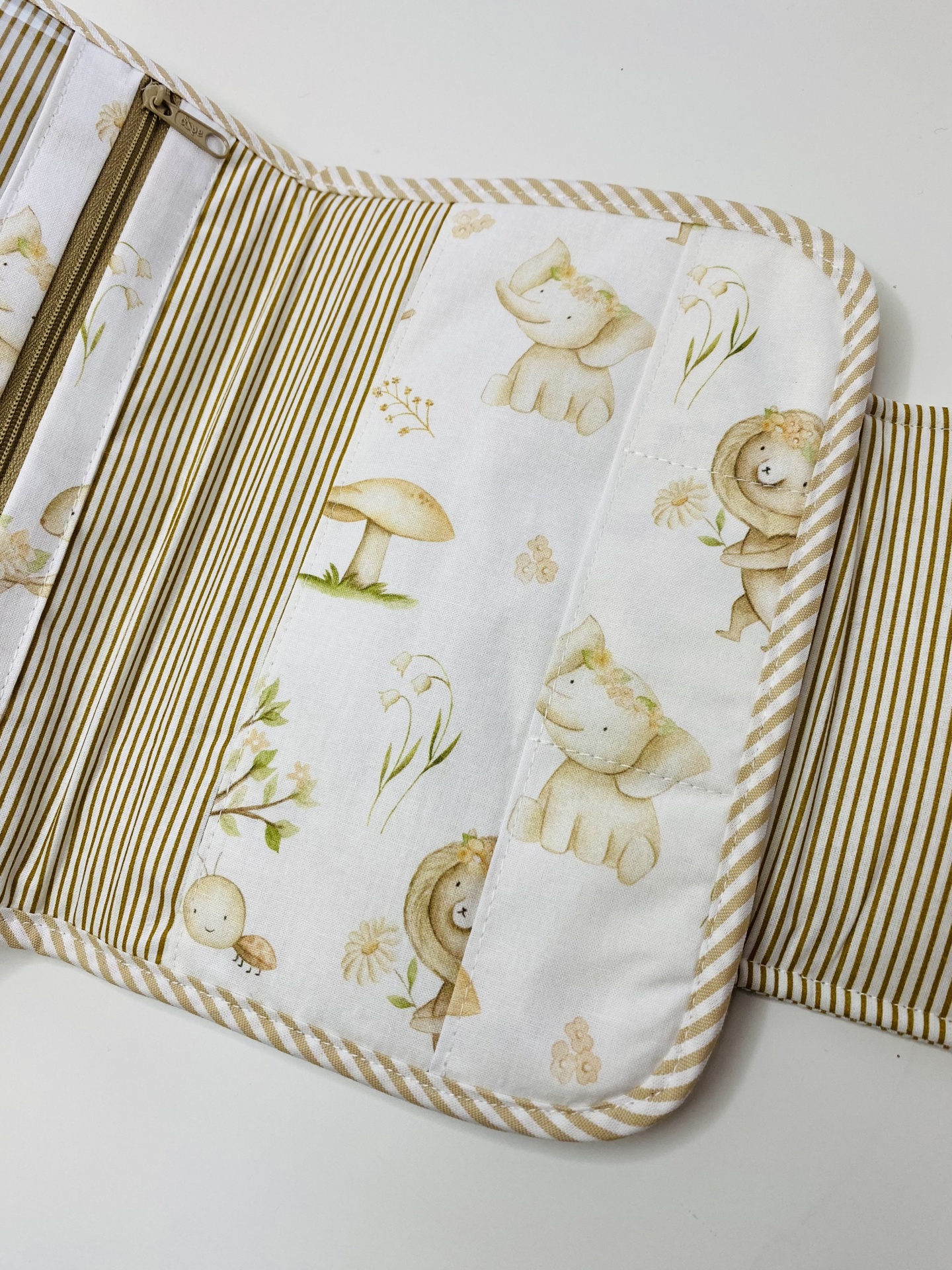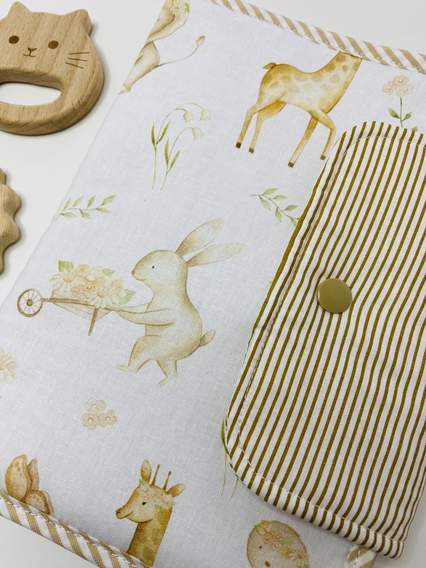 Porta documentos de criança. Espaço para a caderneta de saúde, boletim de vacinas, cartões e outros documentos do bebé. Tecidos de algodão.