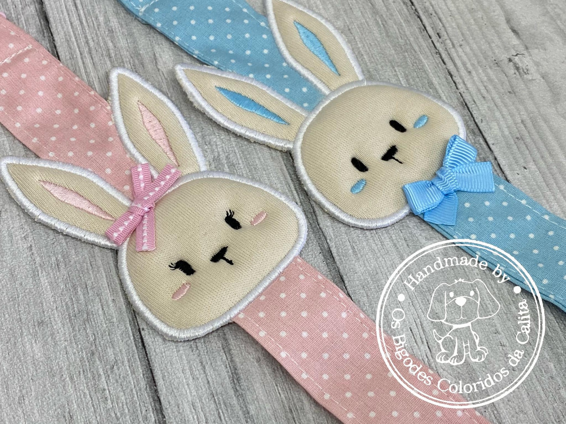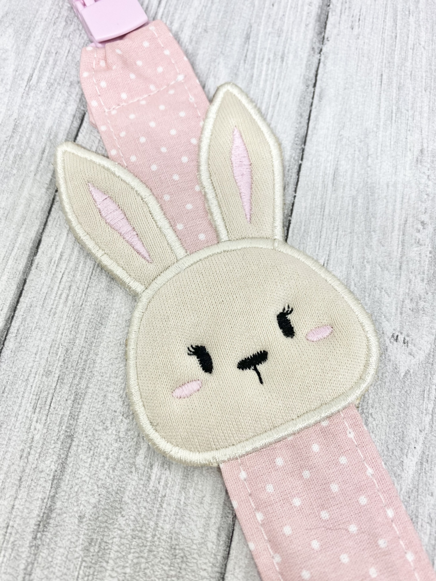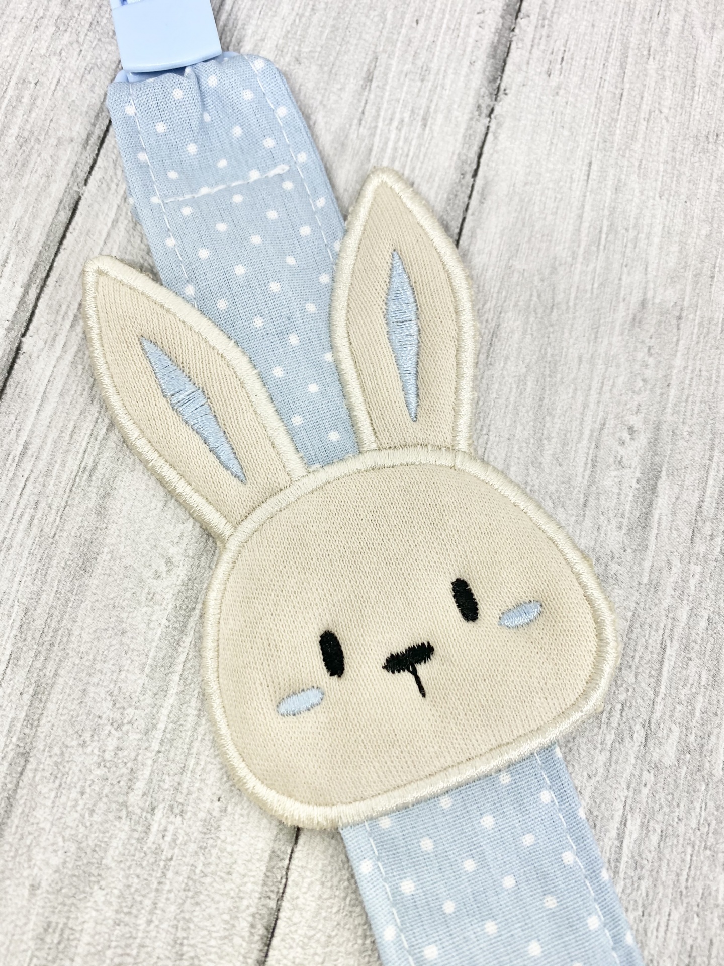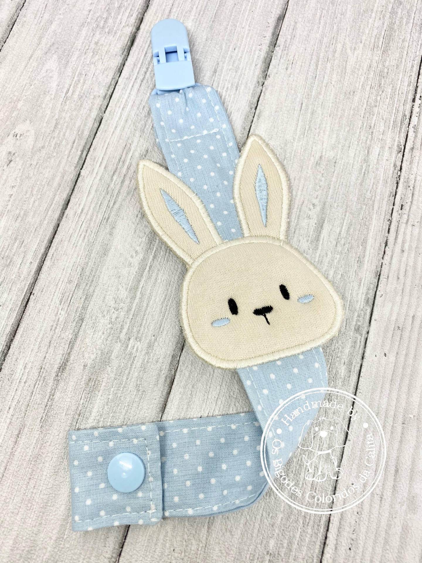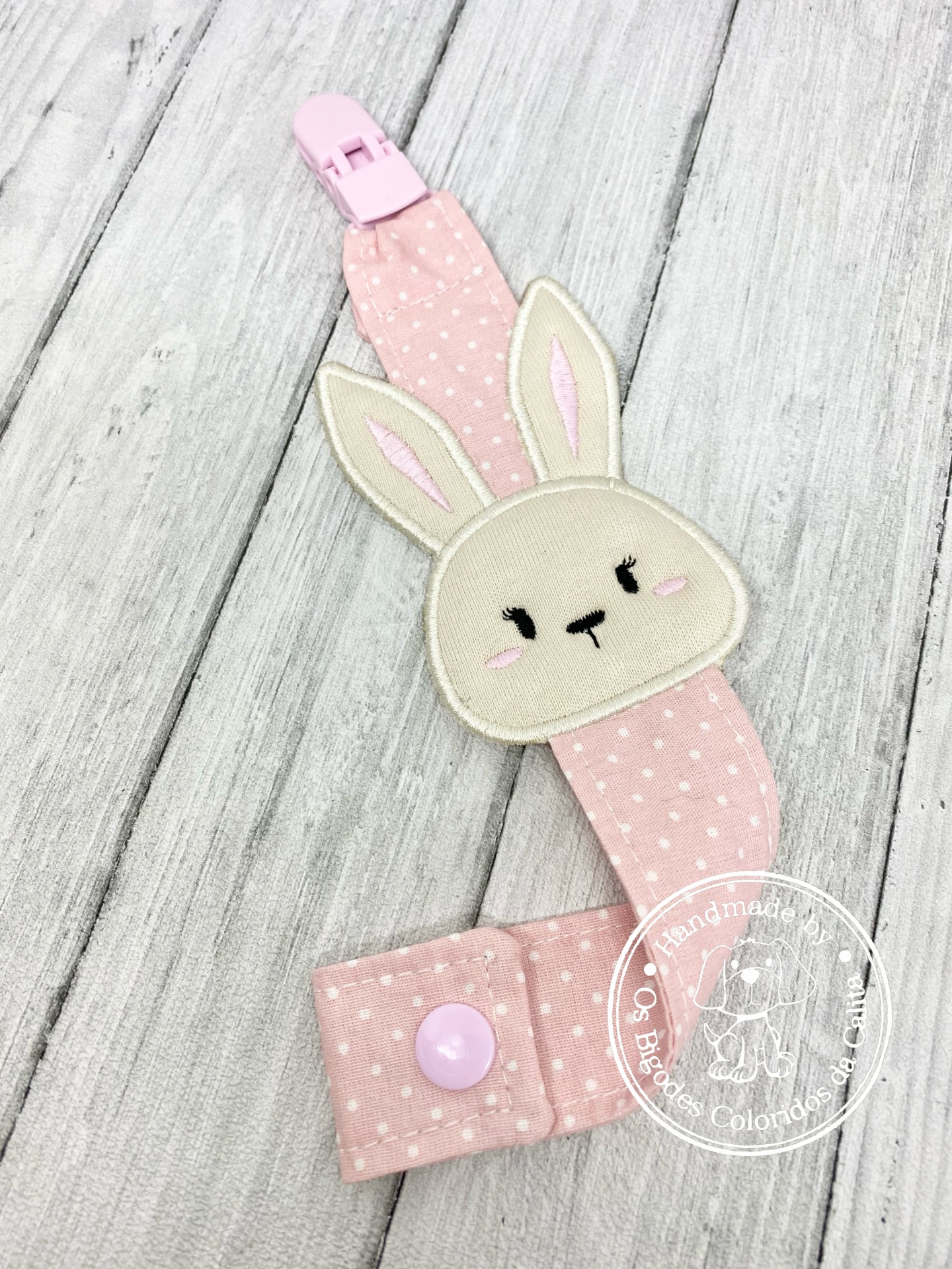 Prende chucha com coelhinho bordado