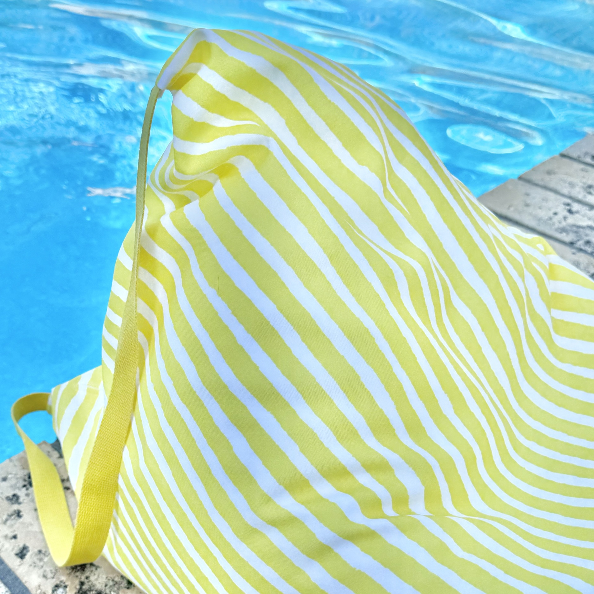 Puff de praia feito em tecido minimate.