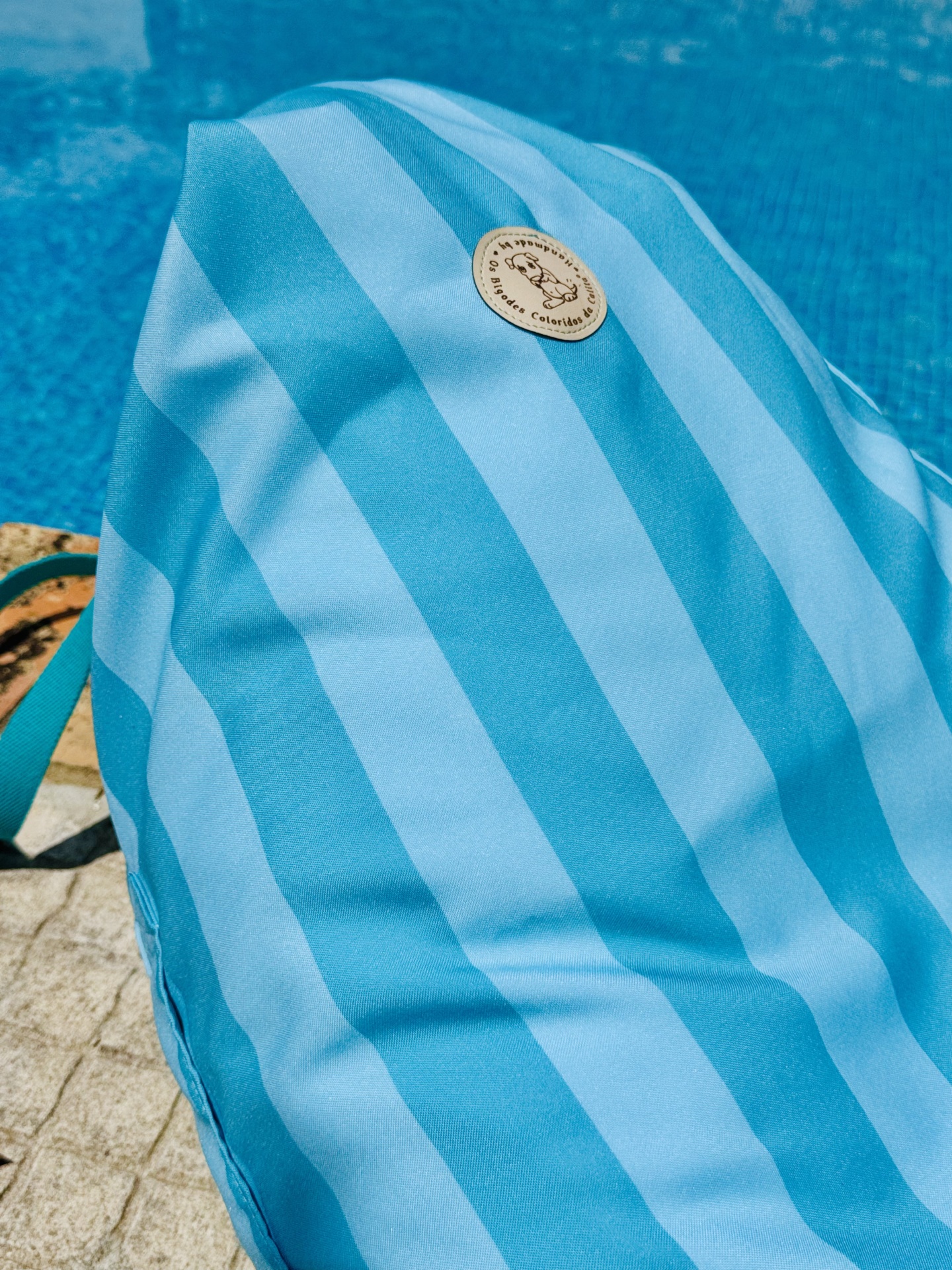 Puff de praia feito em tecido minimate.