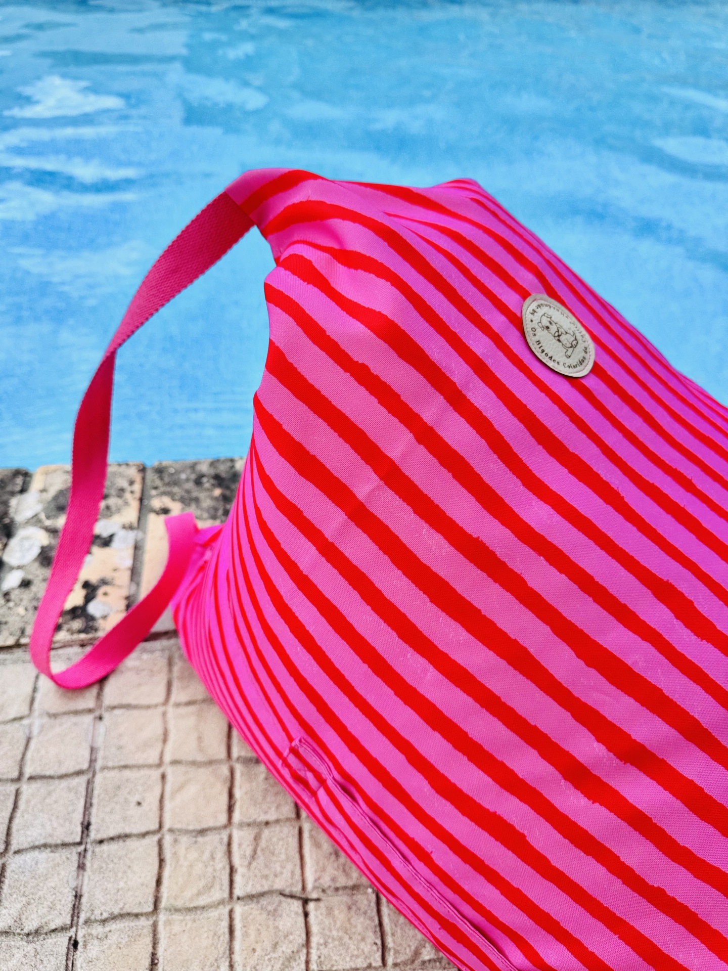 Puff de praia feito em tecido minimate.