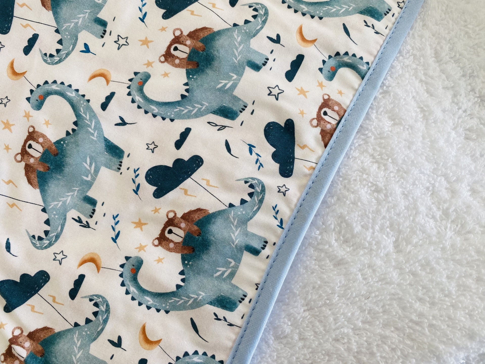 O turco é um material extremamente absorvente, proporcionando assim uma rápida secagem do bébe. O capuz da toalha, tambem este em turco, facilita a secagem do cabelo do bebe e evita que a cabeça esteja a apanhar frio.